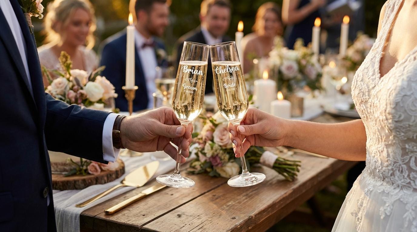 Experience the luxury and elegance of personalized Champagne glasses at your next special occasion. Our carefully crafted glasses feature a sleek and stylish design that's sure to impress your guests and make your event even more memorable.
