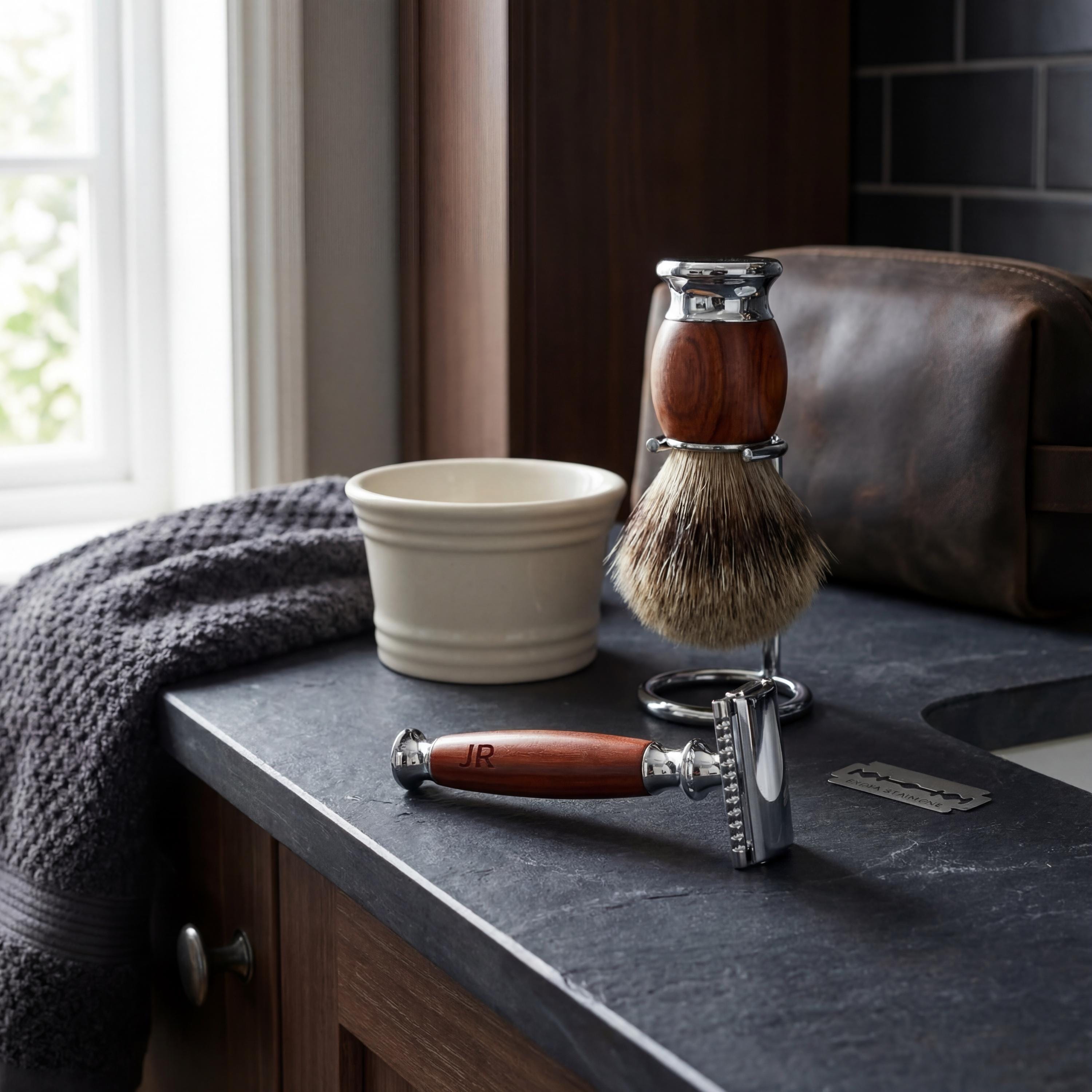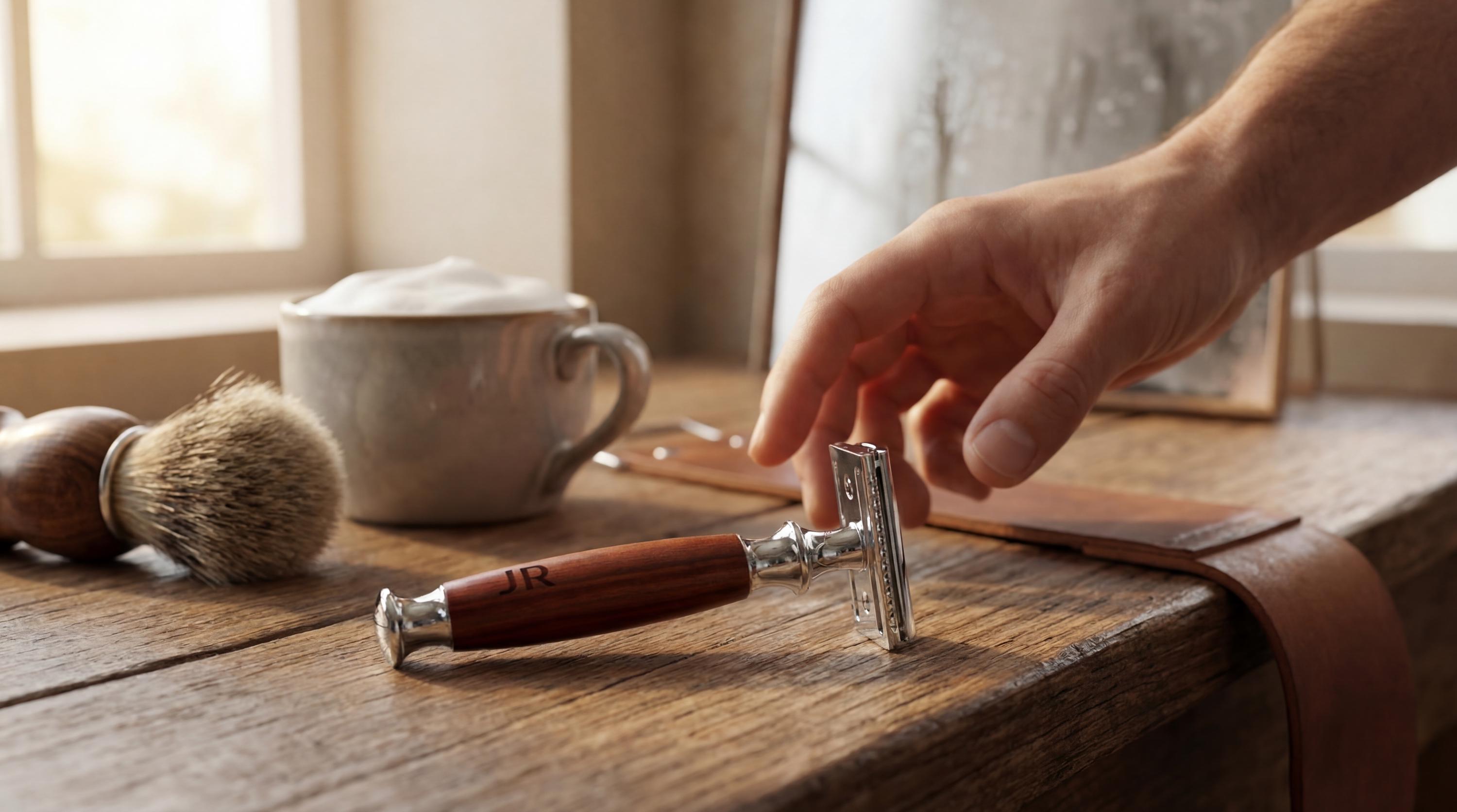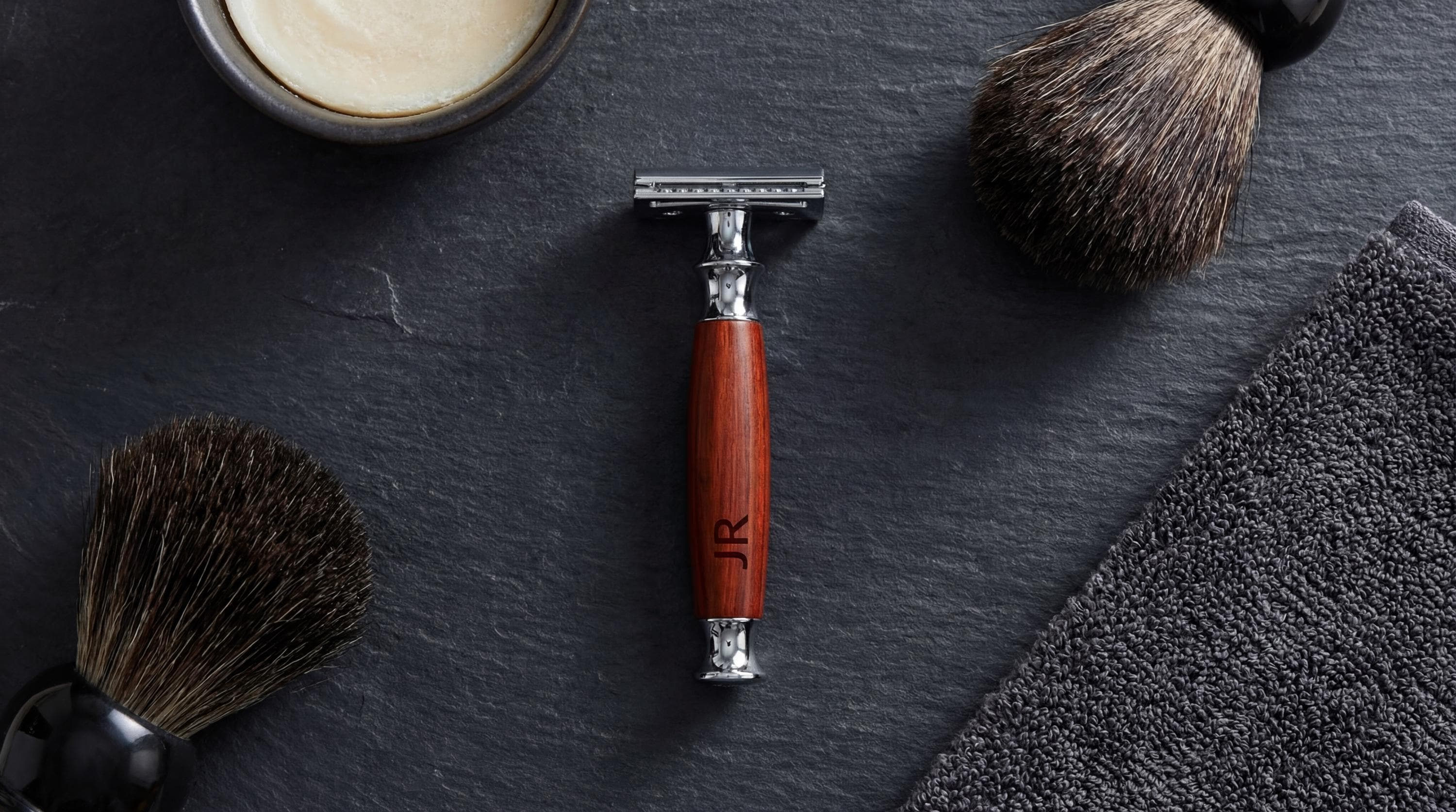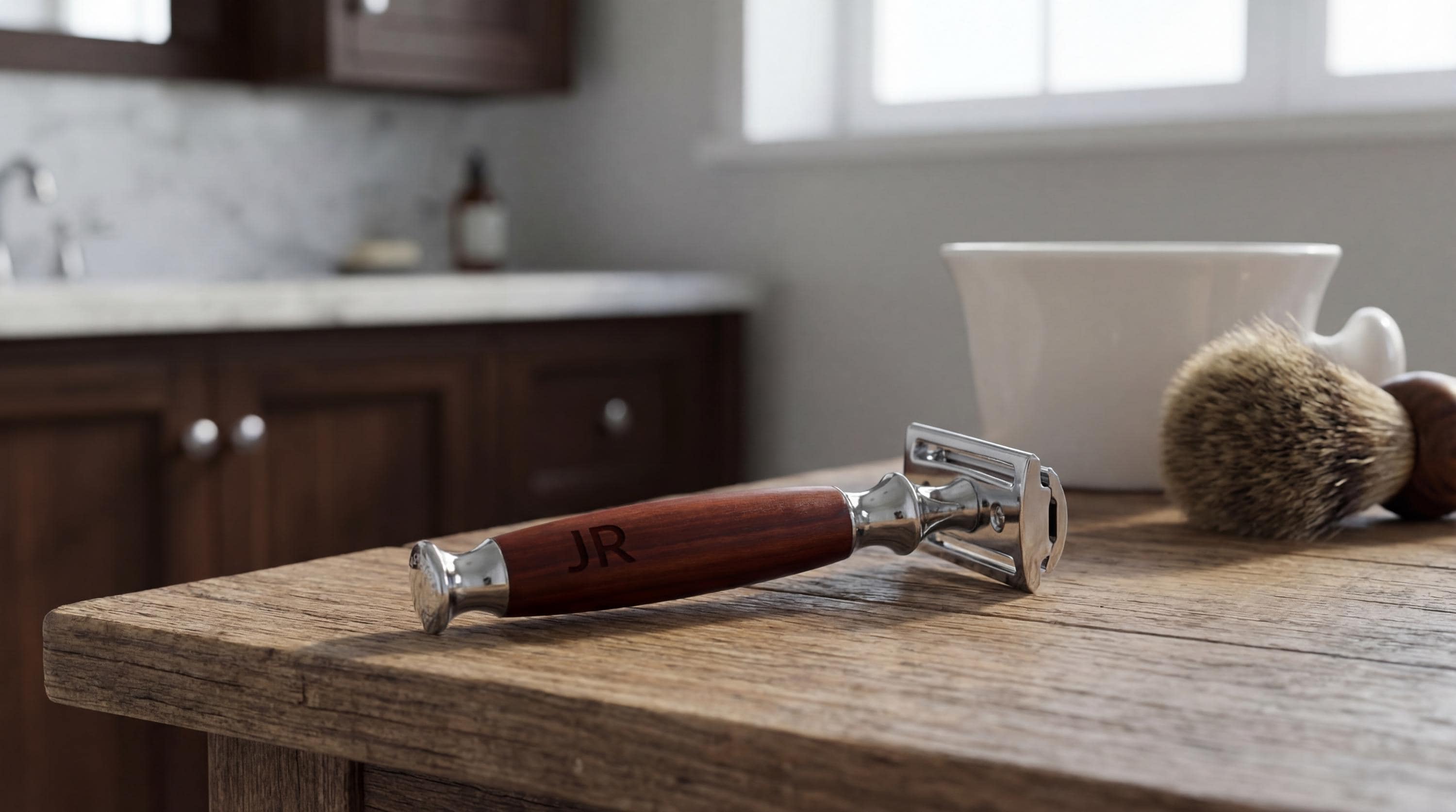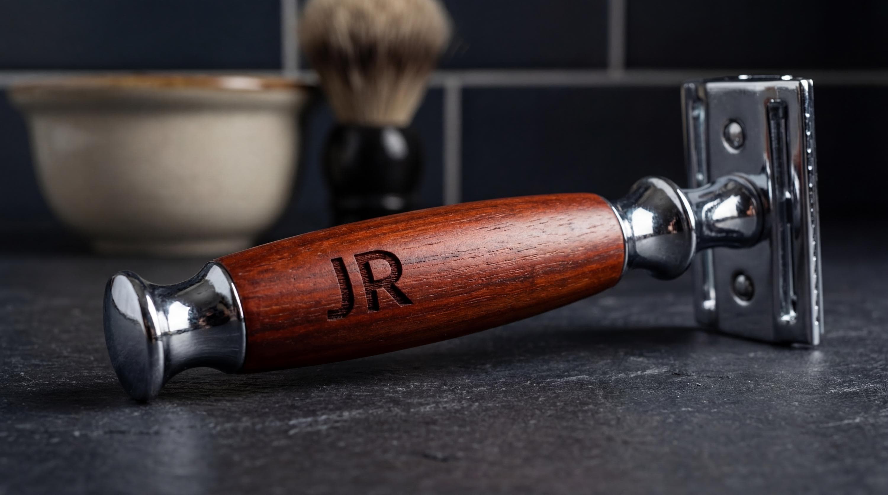 Personalized Safety Razor with Sandalwood Handle, Custom Engraved Double Edge Shaving Tool