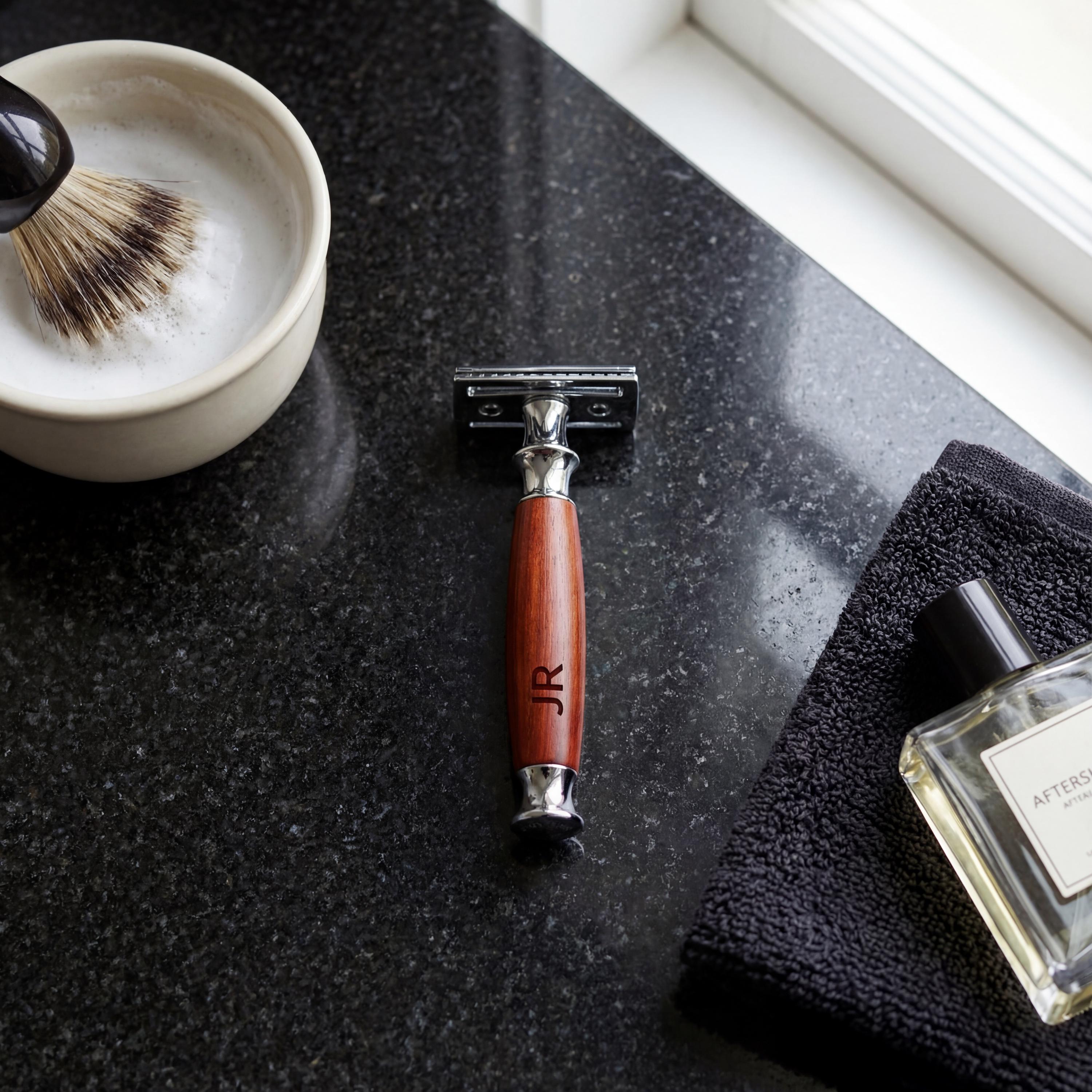 Looking for the perfect gift for the stylish and sophisticated man in your life? Look no further than our personalized razor. Crafted with a zinc alloy head and a Sandalwood handle, this razor not only looks elegant but is also durable and easy to use.