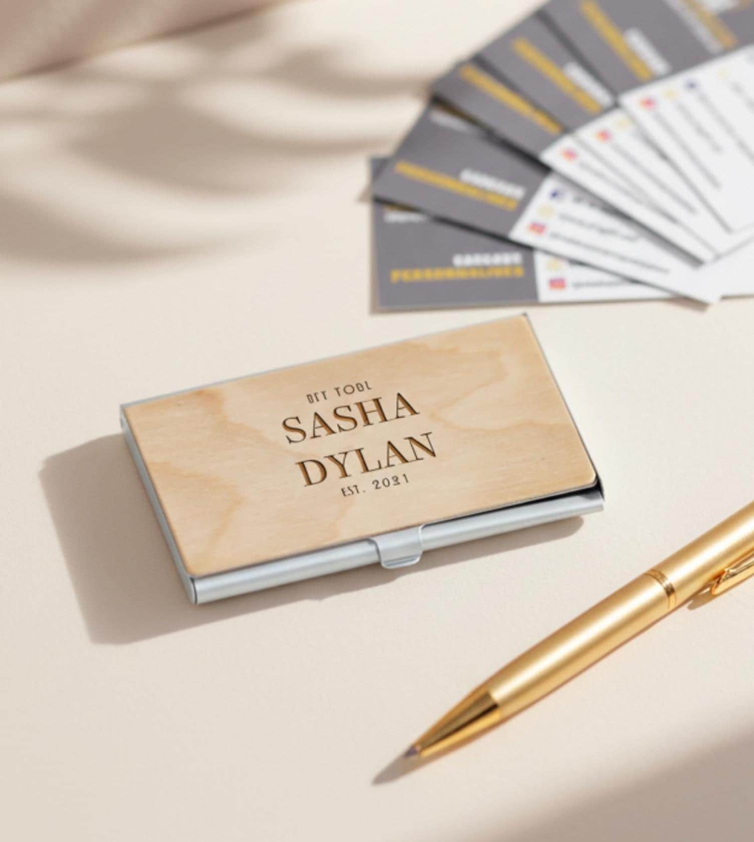 Customized Business Card Holder, Personalized Wooden Business Card Holder, Engraved Business Card Cases, Desk Accessories, small business