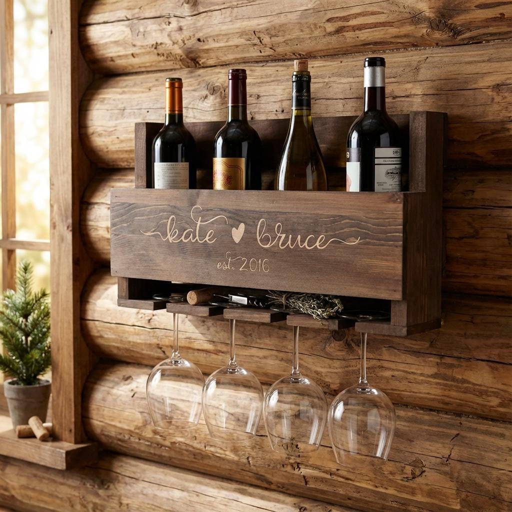 Personalized Wine Rack, Customized Bottle Wine Rack, Rustic Wine Rack, Wall Mounted Wine Rack, Gift for the couple, Christmas Gift