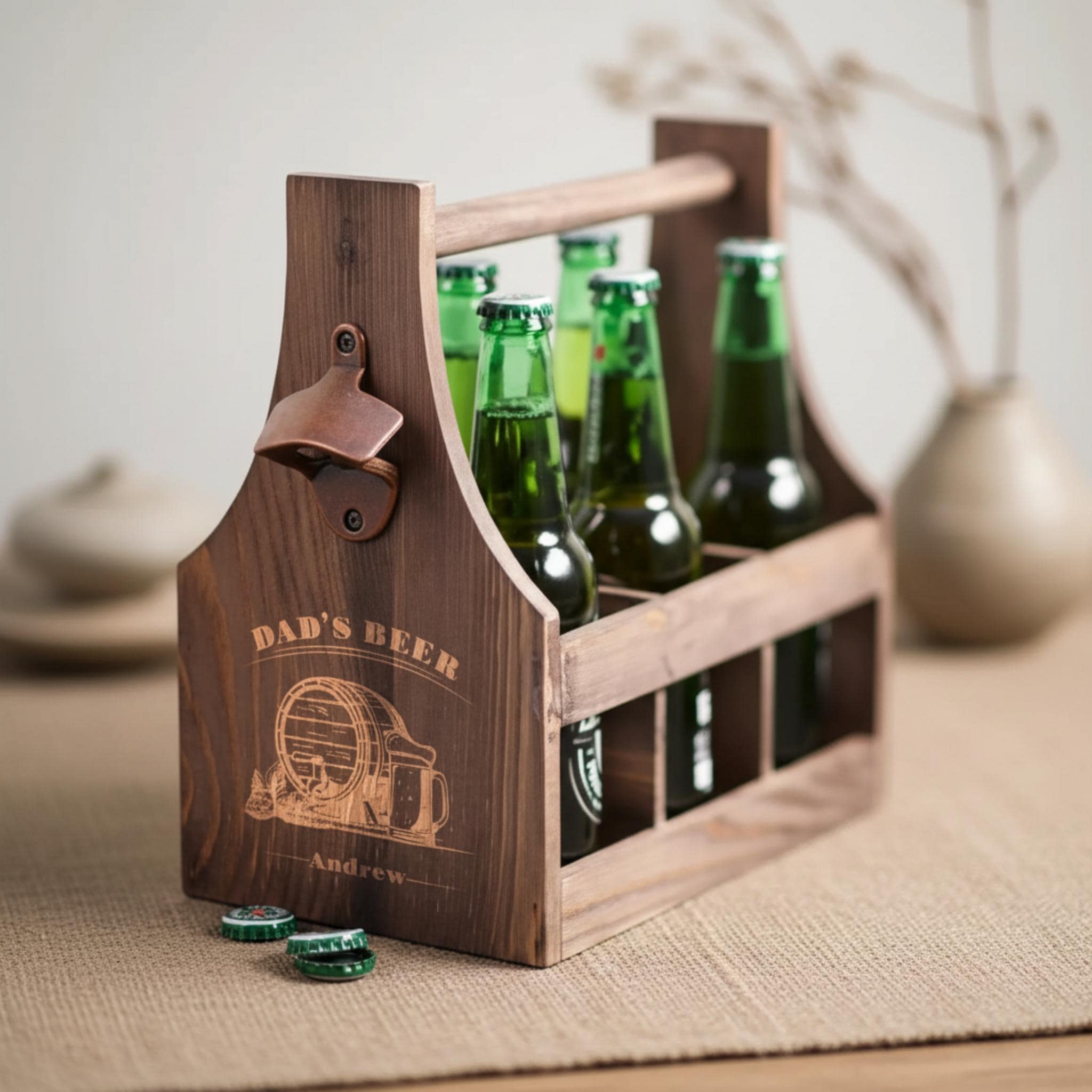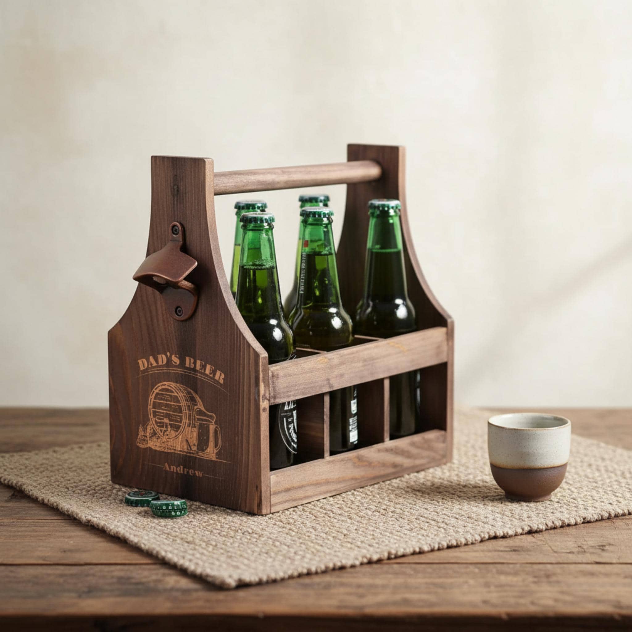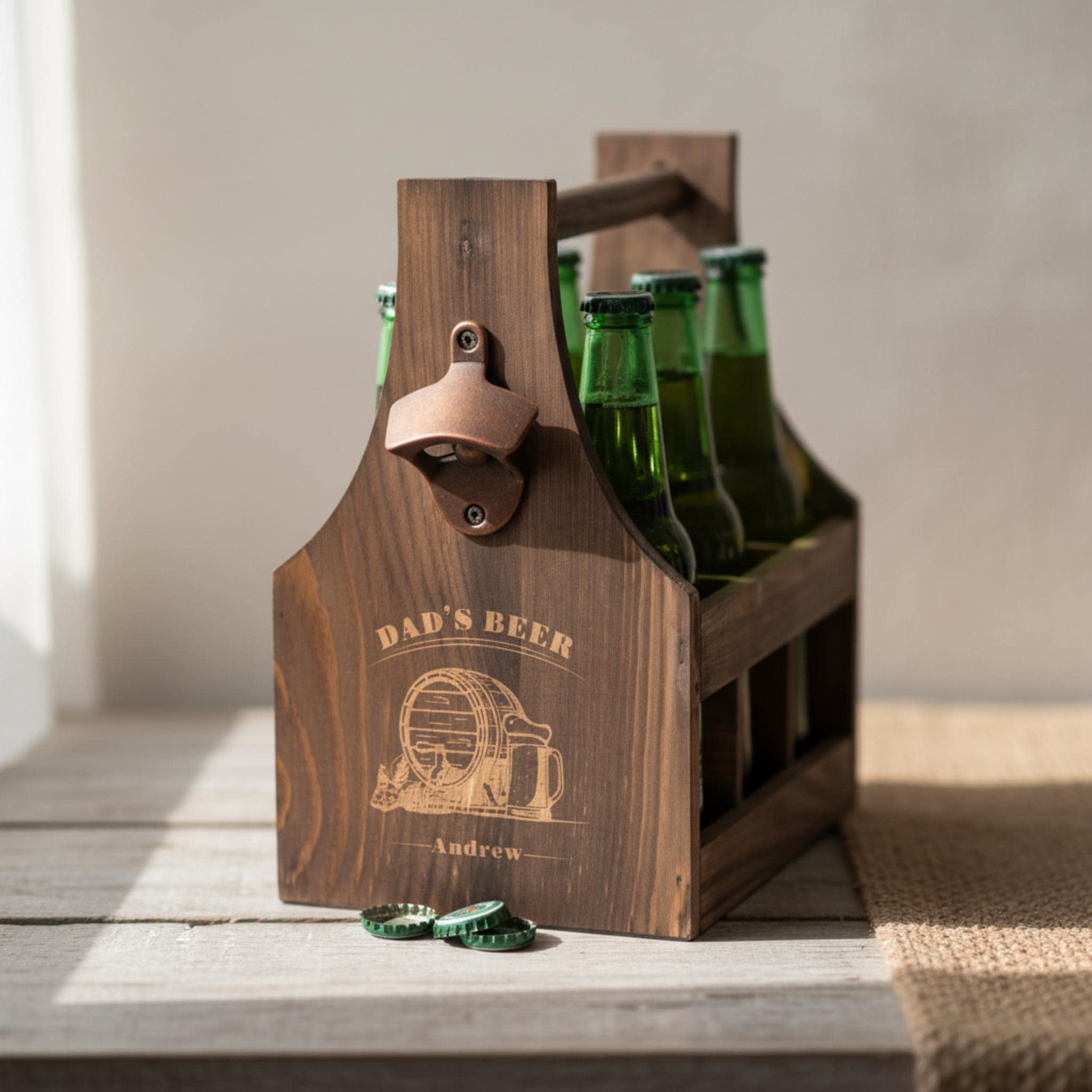 So whether you're shopping for Father's Day, a birthday, or just because this personalized six-pack beer caddy is the perfect gift for the beer lover in your life. With its high-quality construction, customizable design, and practical functionality, it's sure to be a hit with anyone who enjoys a cold one. Order yours today and give the gift of beer in style!