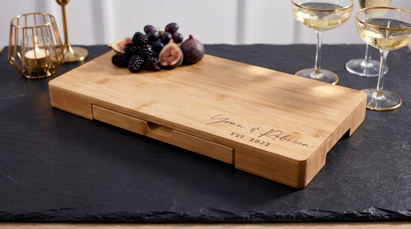 Elevate your entertaining experience with our exquisite personalized cheese board sets, perfect for weddings, bridal showers, engagements, and housewarming parties. Choose between two stunning sets crafted with precision and designed to impress your guests.