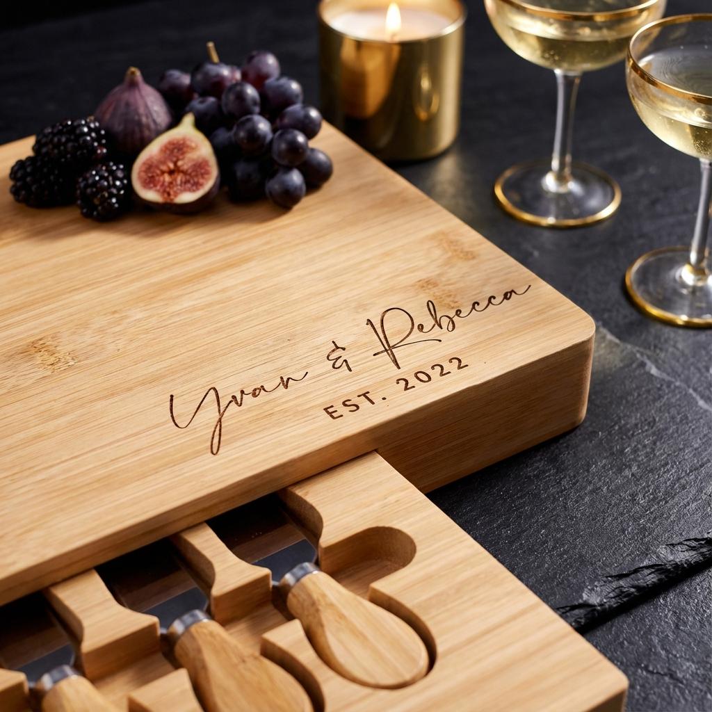 Personalized Cheese Board Set, Customized Charcuterie Board for Weddings, Bridal Showers, Housewarming Parties, Hosting and couples Gift