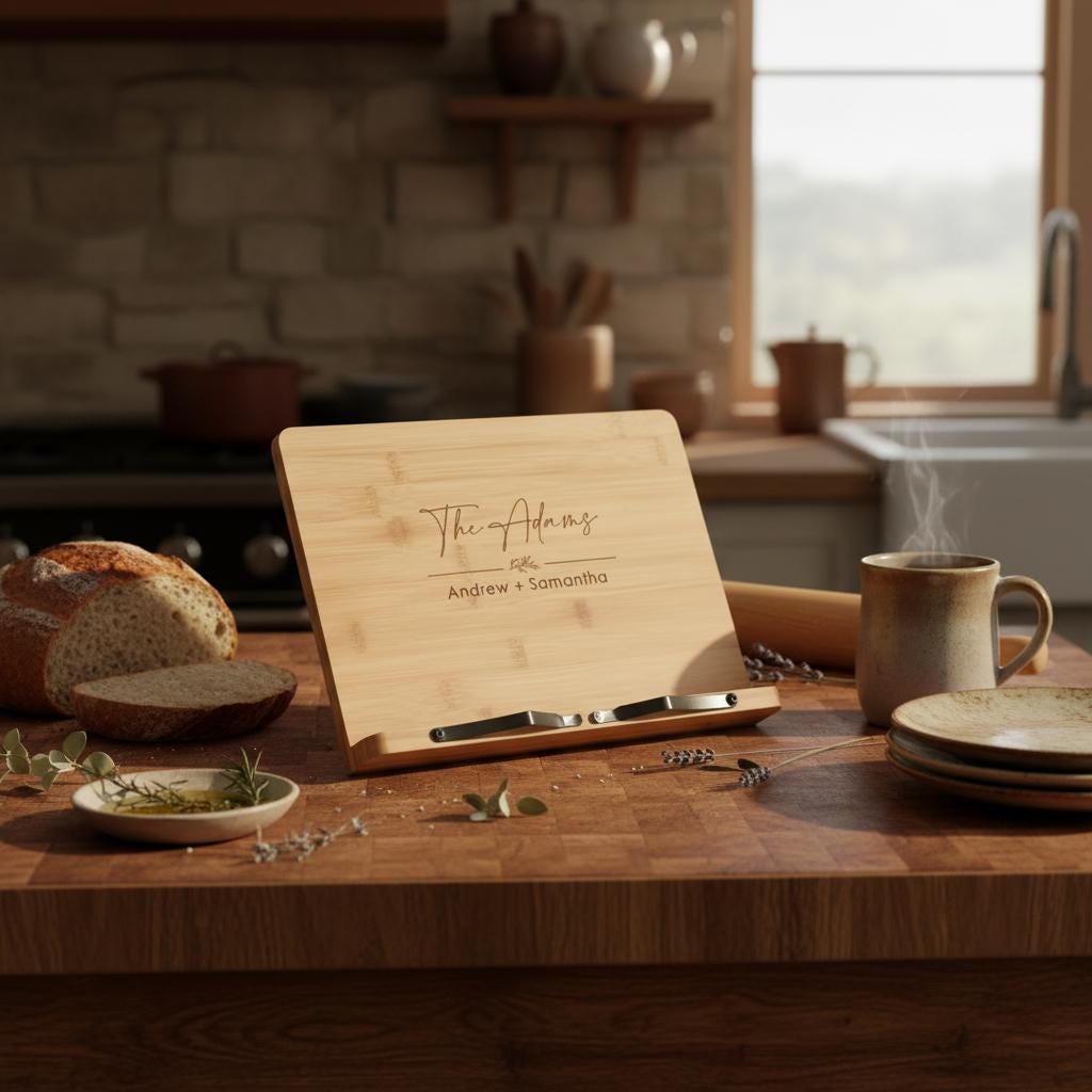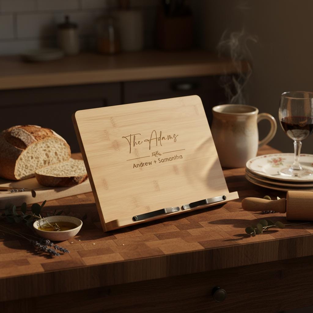 Don't settle for a generic gift, give your family something they'll truly appreciate with our personalized bamboo iPad and recipe holders.