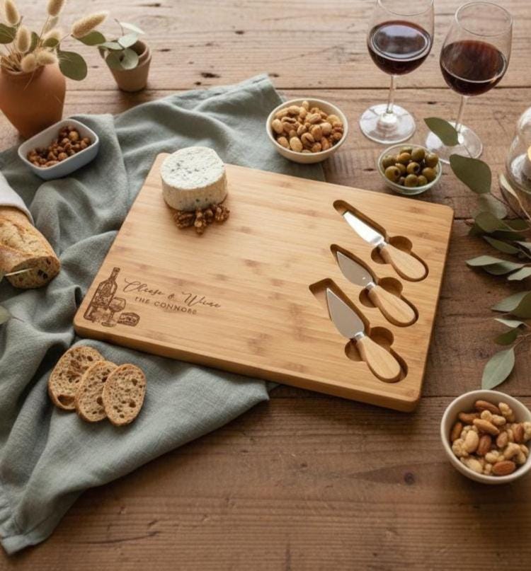 Whether you're treating a cheese aficionado or a passionate host, our personalized bamboo cheese board set is sure to leave a lasting impression. Elevate every gathering with this thoughtful and practical gift that celebrates the joy of sharing delicious moments with loved ones.