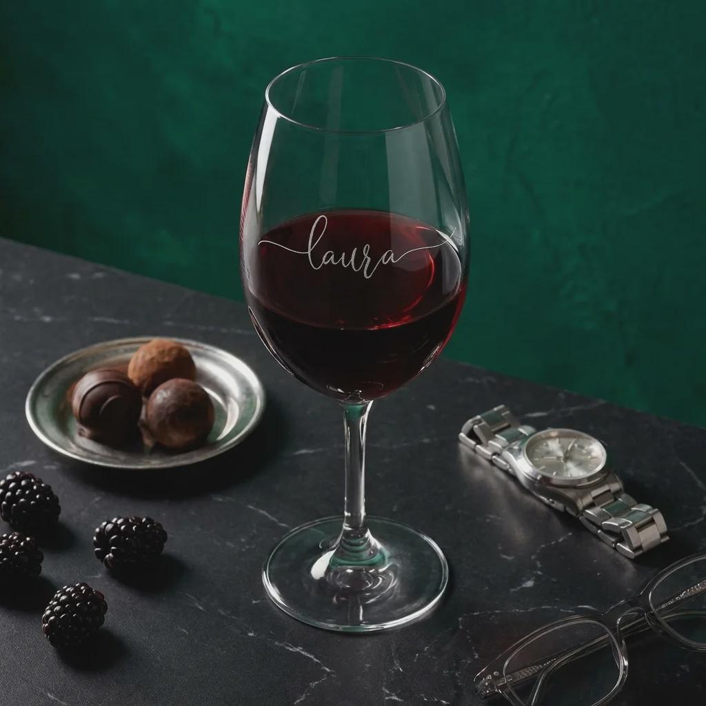 Upgrade her collection with this personalized stemmed wine glass. Hand-crafted using professional-grade laser etching, each glass features a permanent, frosty-white finish that will never peel, fade, or wash away. Featuring an elegant bowl designed to enhance the aroma and flavor profiles of red or white wine, it serves as a professional-grade drinking vessel and a meaningful custom keepsake.