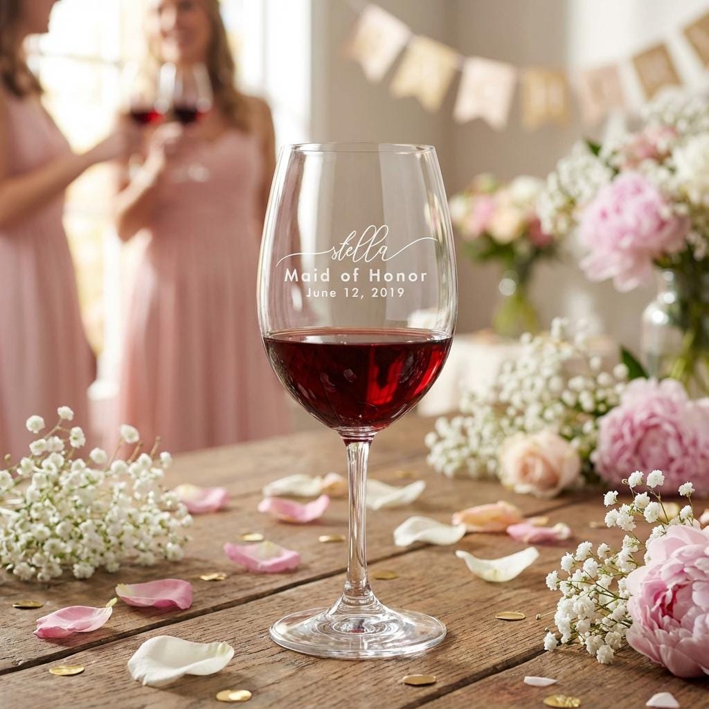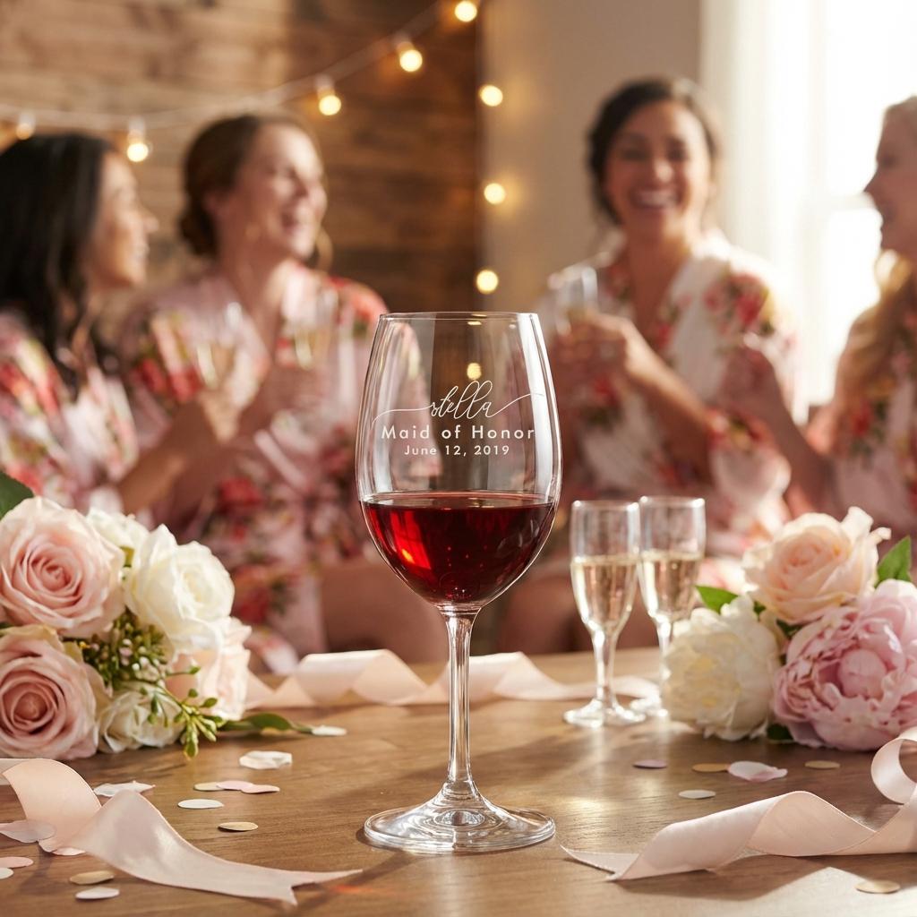 Personalized Bridesmaid Wine Glass | Custom Maid of Honor Proposal Gift & Wedding Party Favor