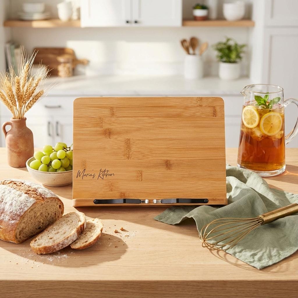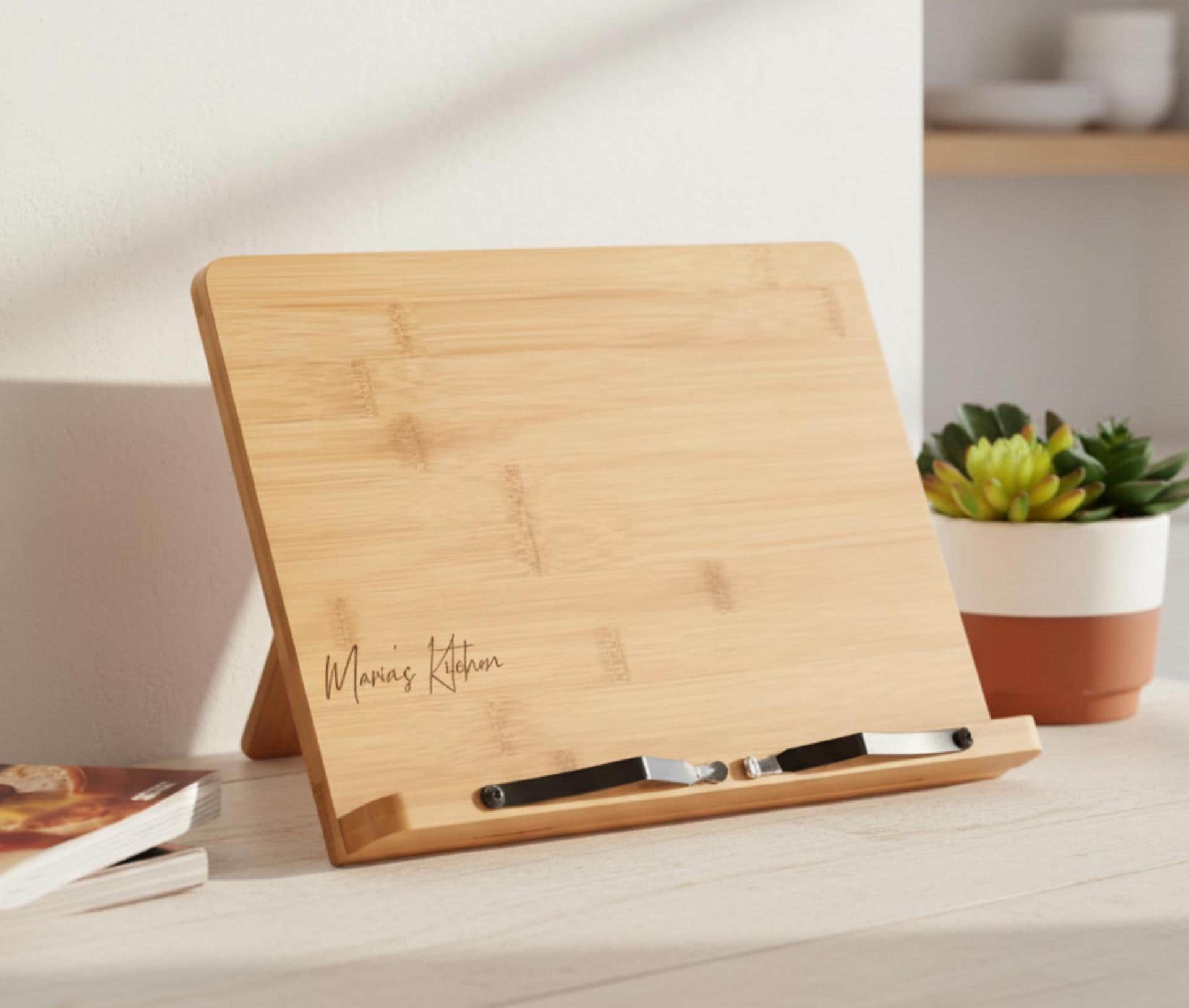 Personalized tablet holder, Recipe holder, iPad stand, Custom cookbook stand, Customized bamboo stand, Mothers Day Gift, Chef easel