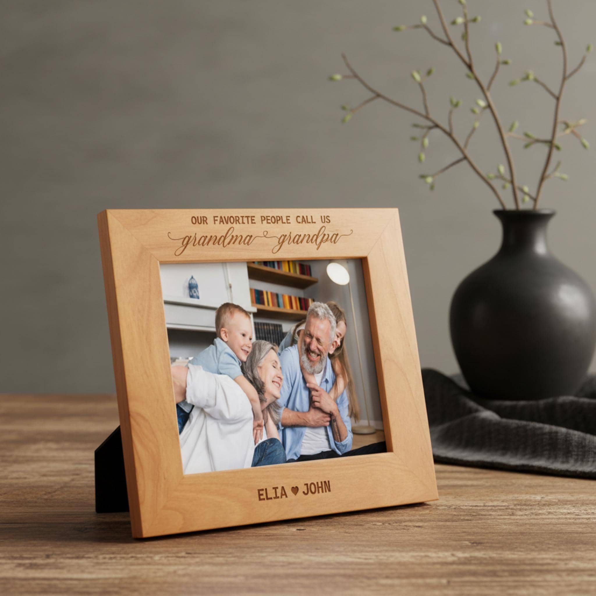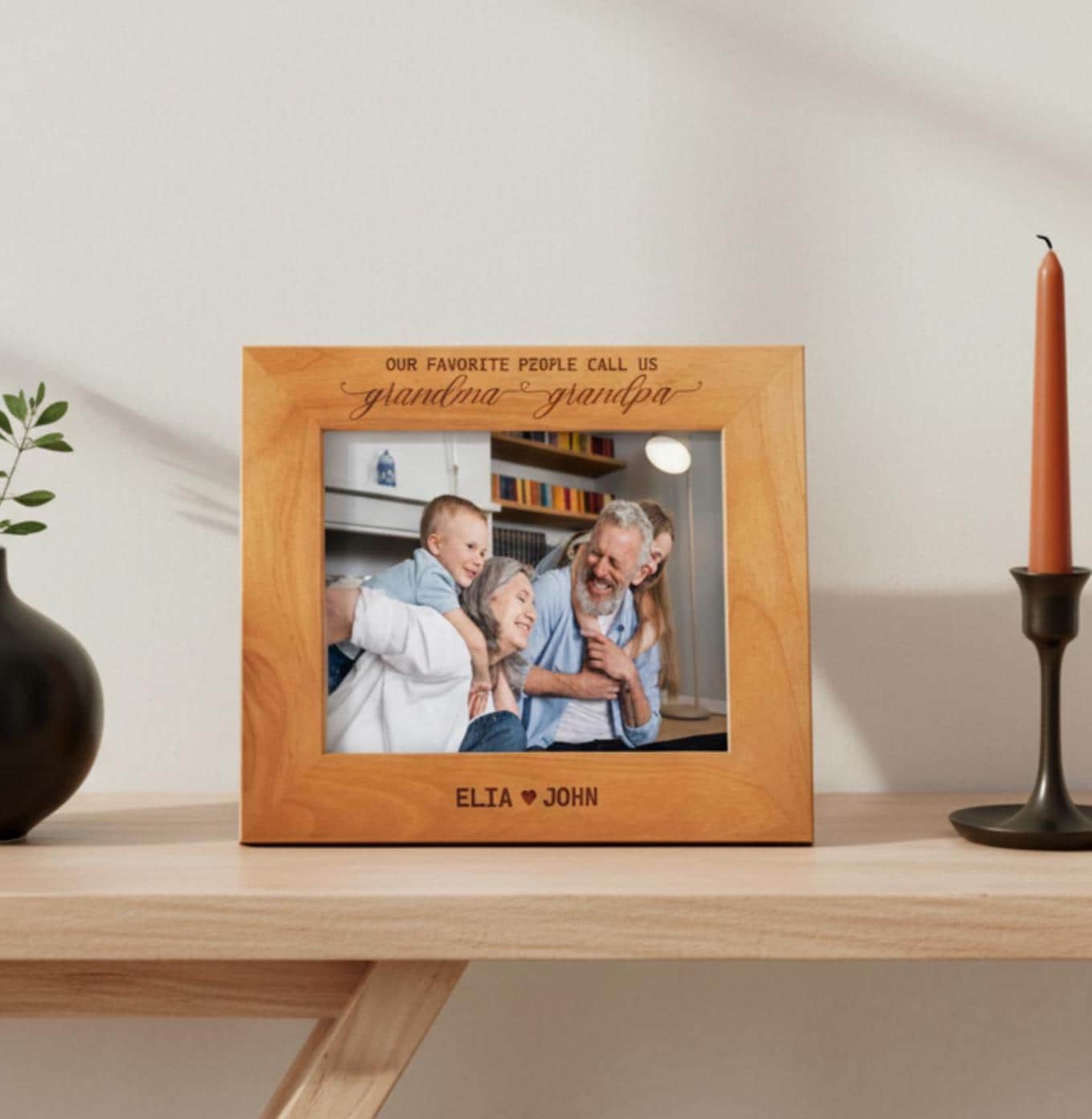 Personalized Wooden Picture Frame for Grandma and Grandpa, Custom Engraved Family Photo Gift