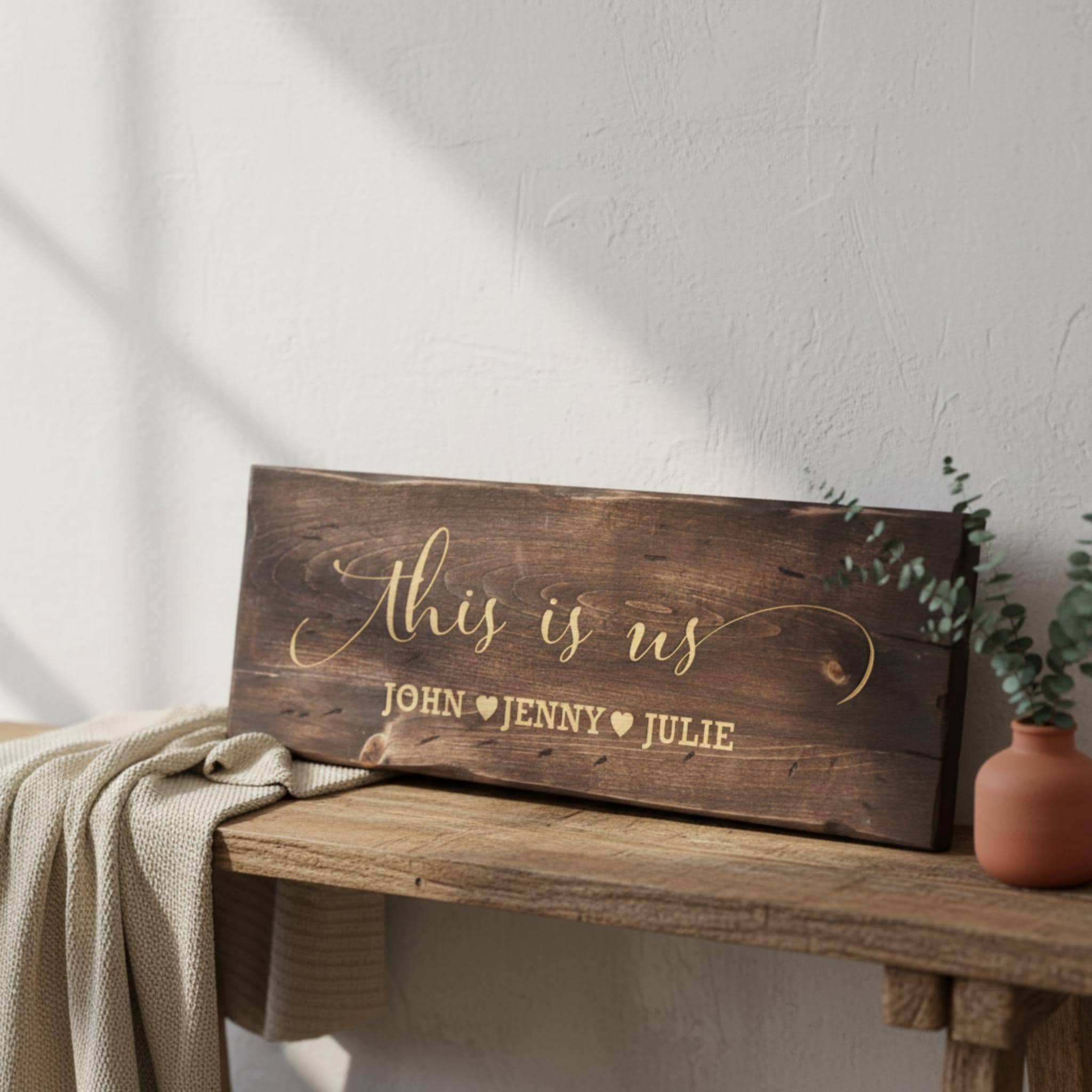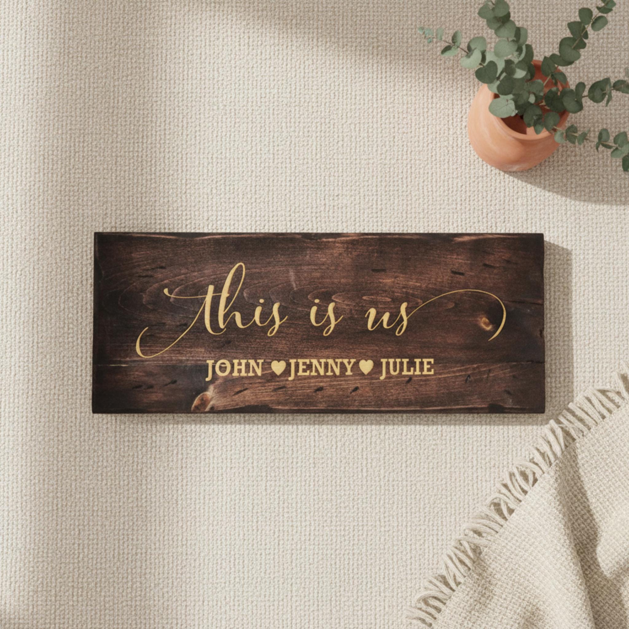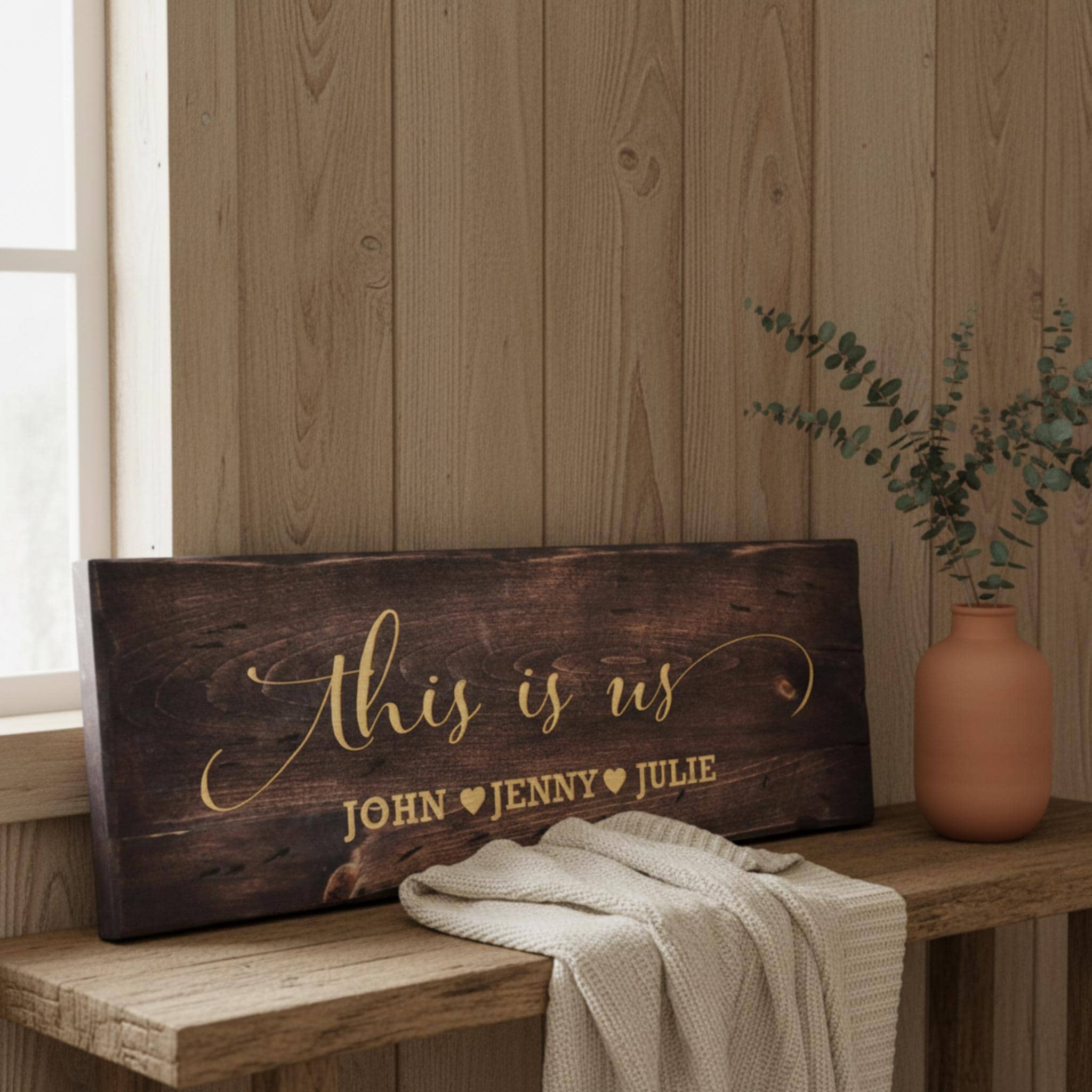 Personalized Wooden Sign, This Is Us: Custom Engraved Family Sign, Rustic Wall Sign, Farmhouse Style Decor, Family Gift, Anniversary Gift
