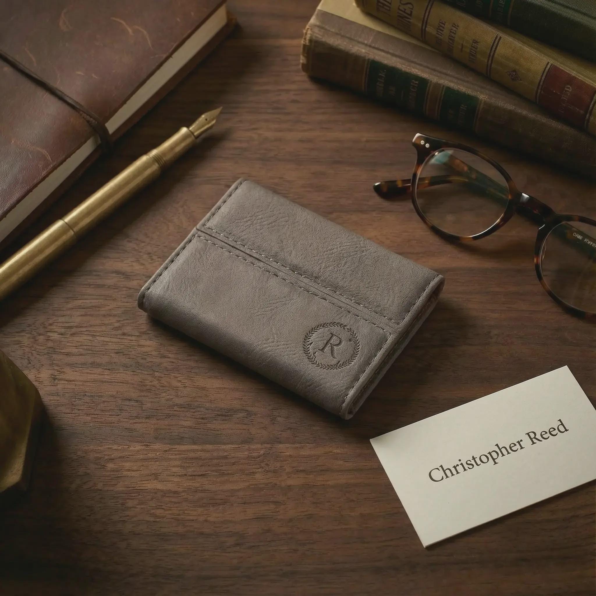 Personalized Vegan Leather Business Case, Custom Engraved Card Organizer, Monogrammed Stationery Sleeve