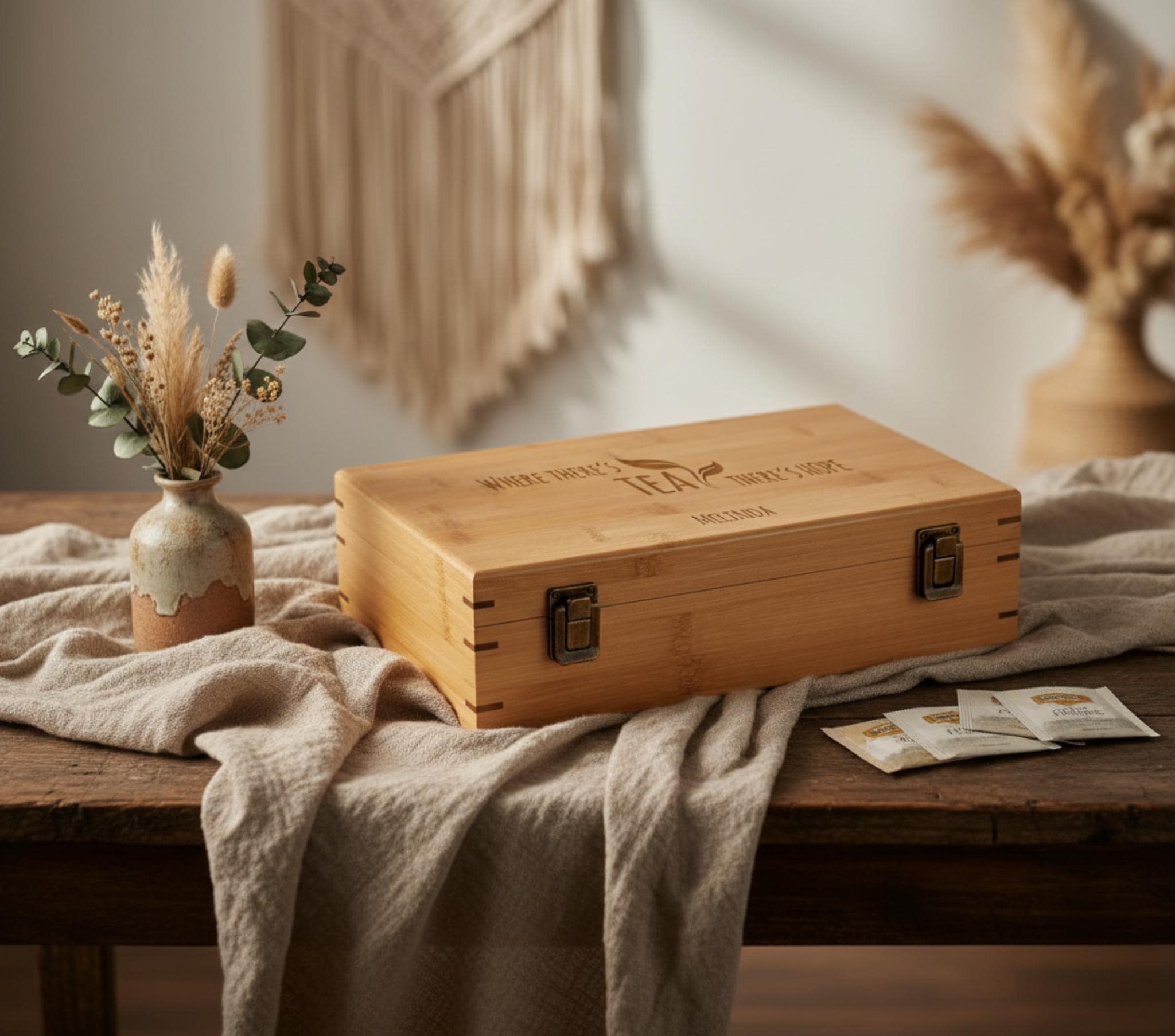 Personalized Bamboo Tea Box – Custom Engraved Tea Organizer | Mother's Day, Grandma, Tea Lovers, Birthday, Wife, Daughter, Christmas Gift