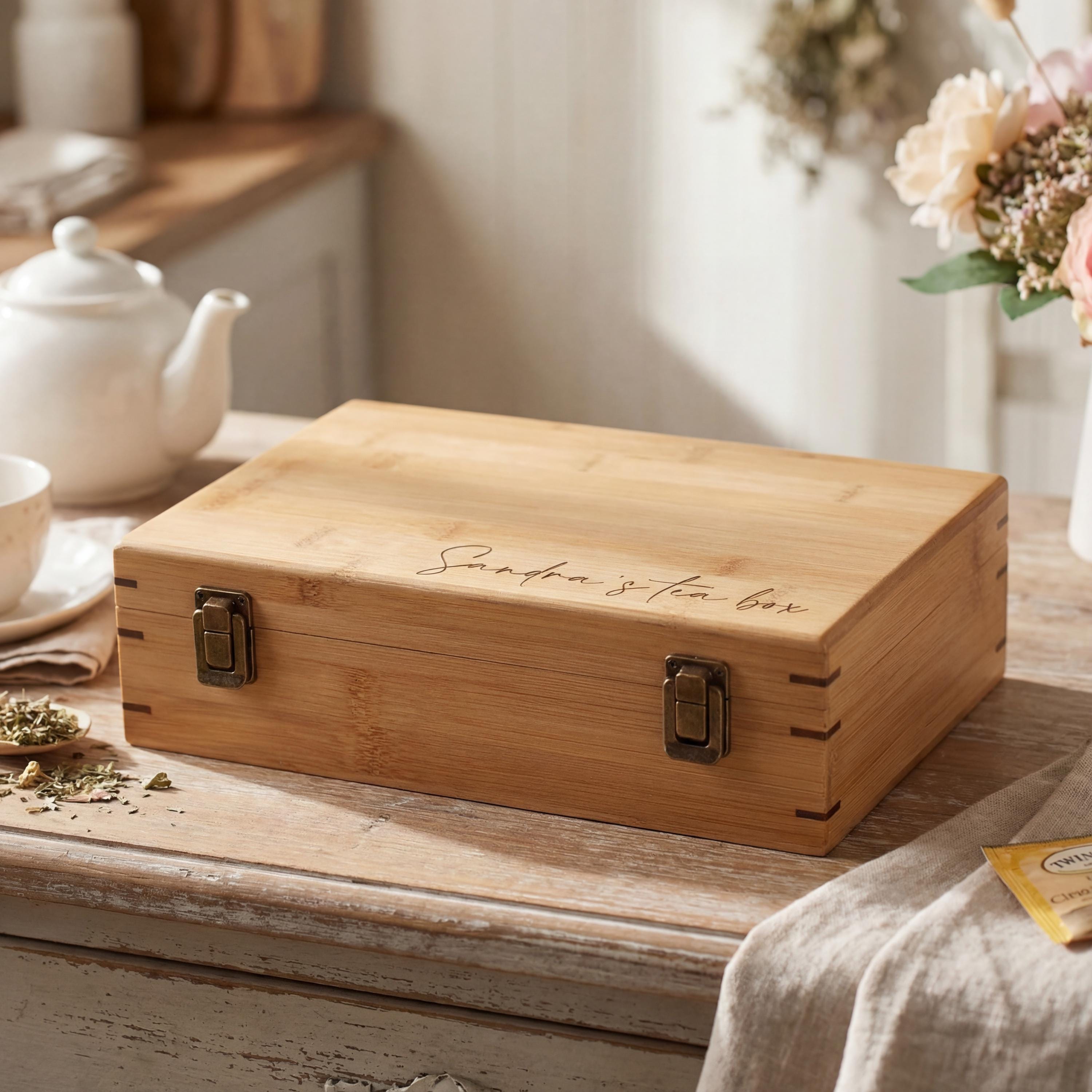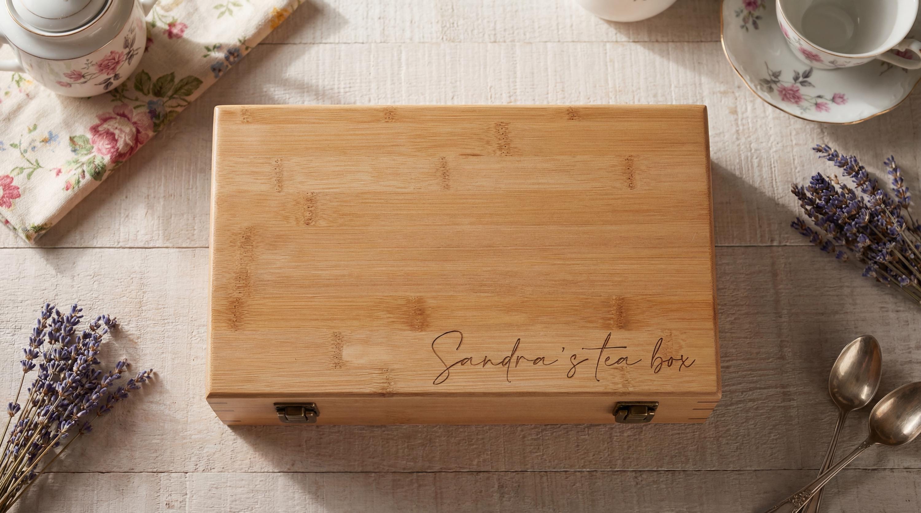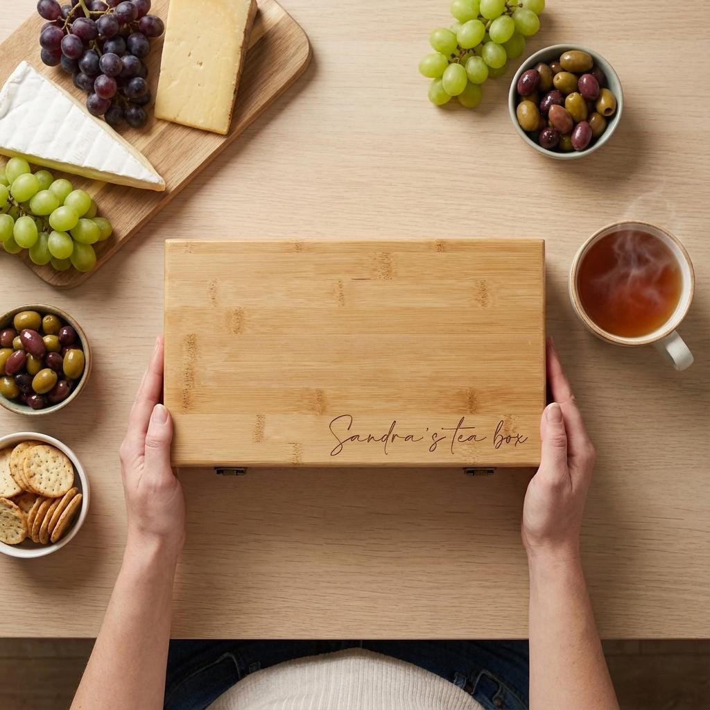 Personalized Tea Box, custom engraving Tea Box, Mothers Day Gift, Bamboo Tea Box, Gift for her, Grandma Gift, Daughter Gift, Christmas gift