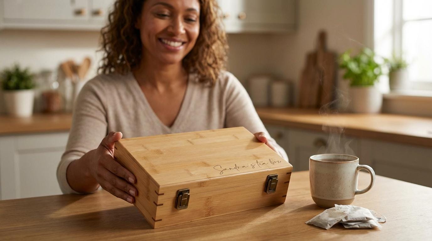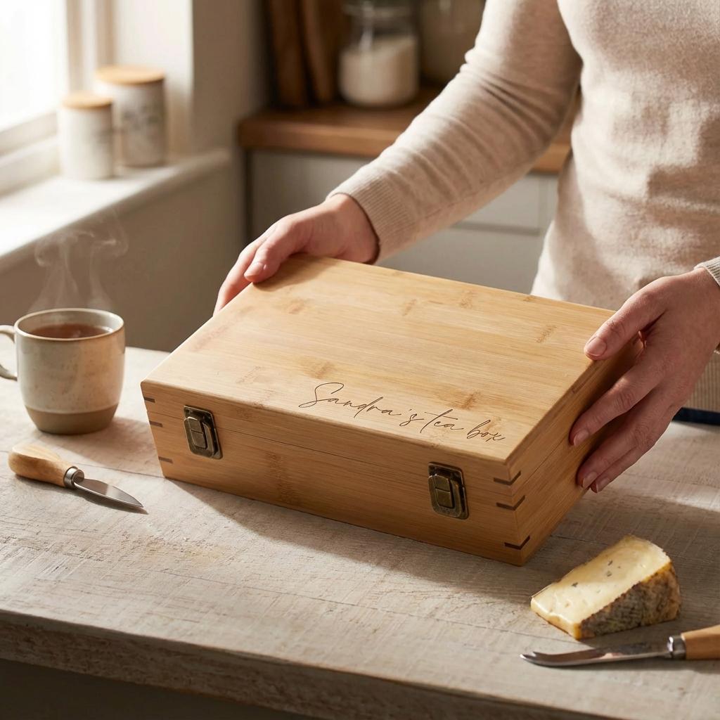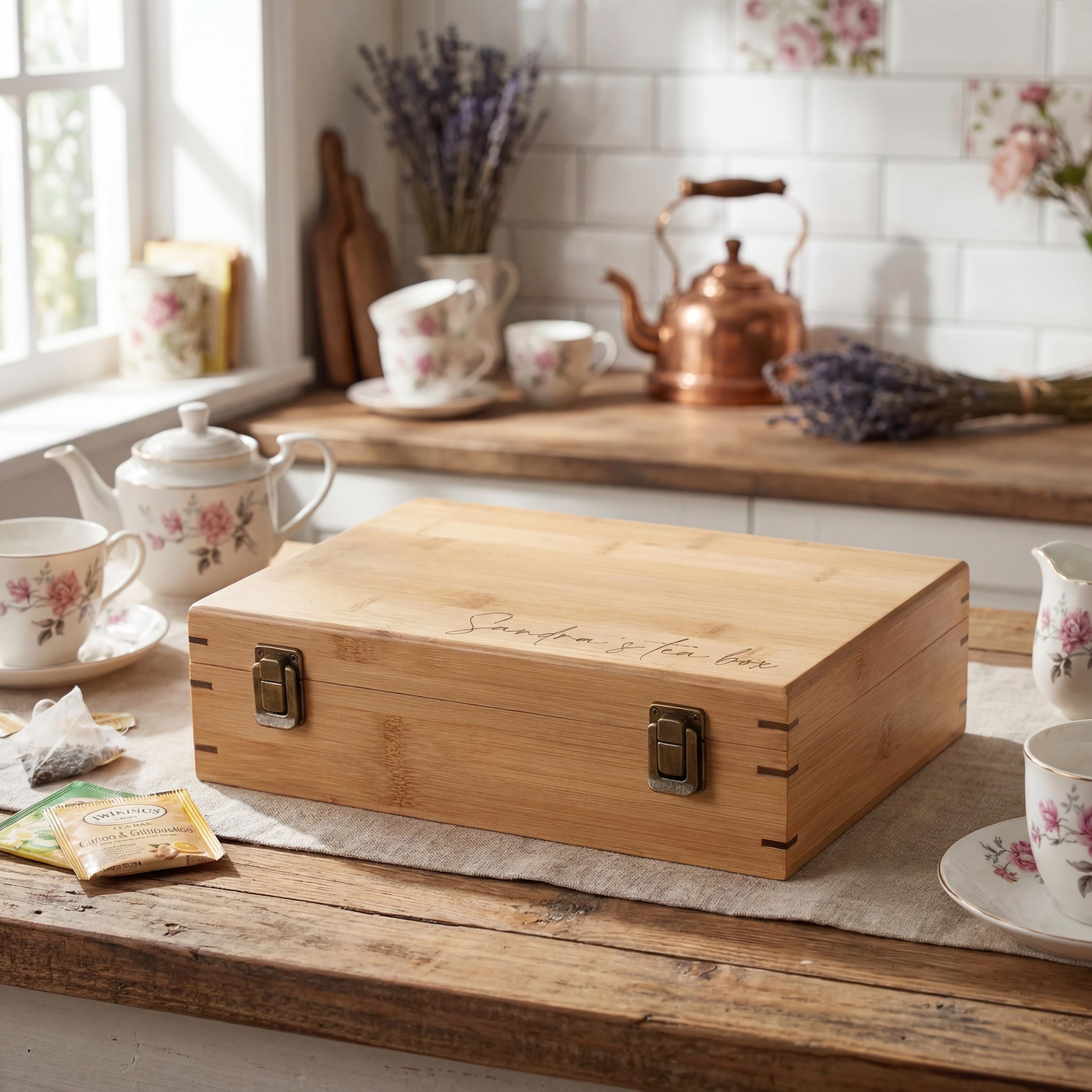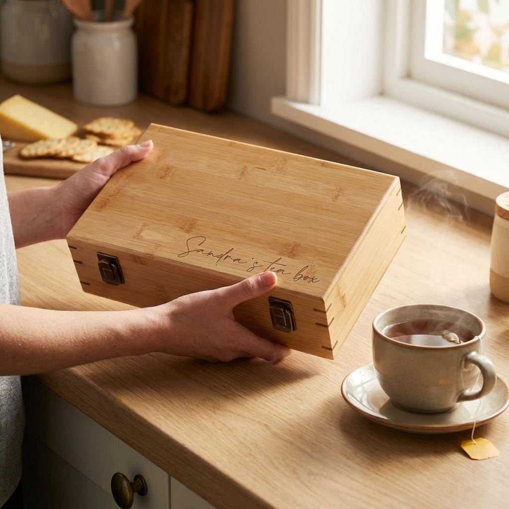 Personalized Tea Box, custom engraving Tea Box, Mothers Day Gift, Bamboo Tea Box, Gift for her, Grandma Gift, Daughter Gift, Christmas gift