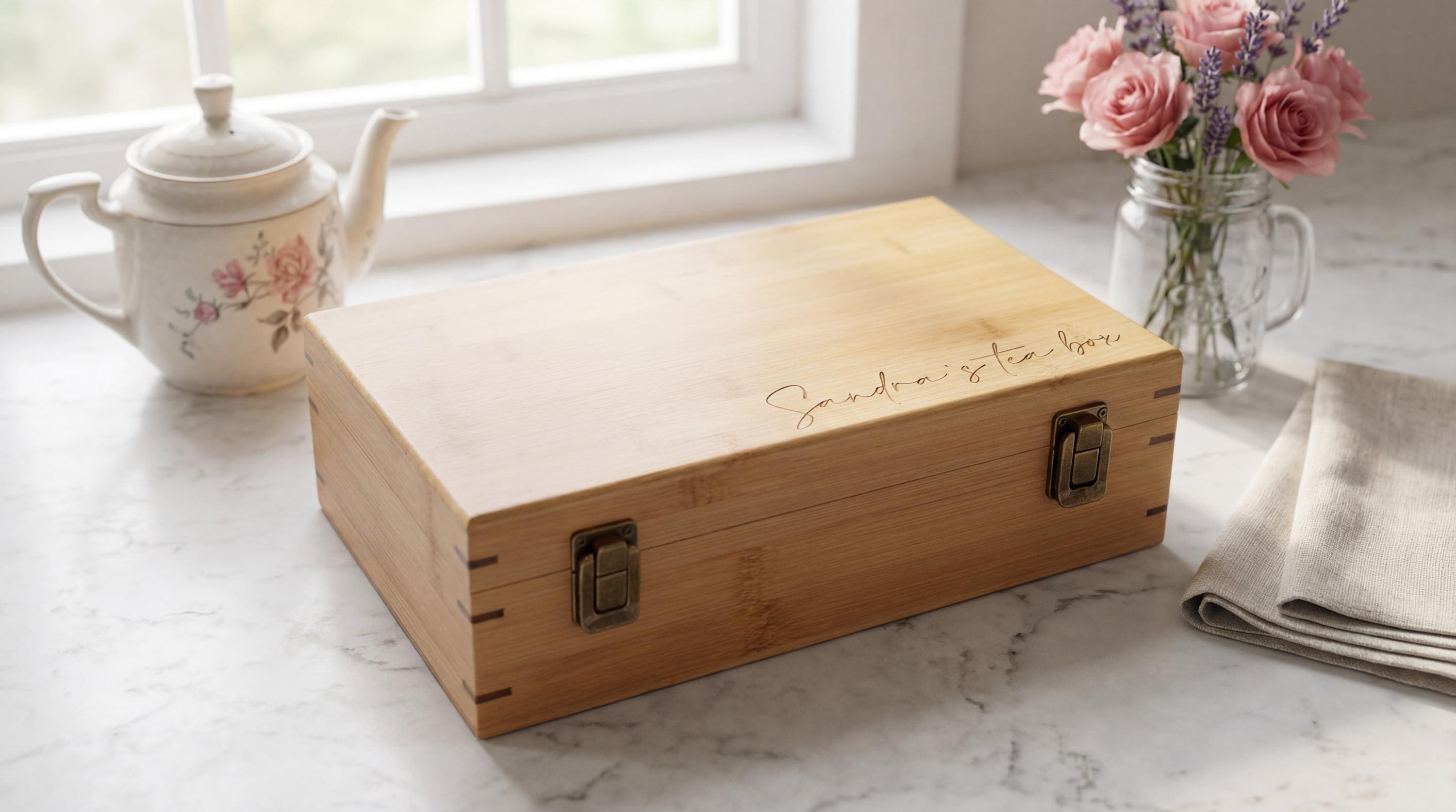 Not only is this personalized bamboo tea box a great addition to your own tea collection, but it also makes a thoughtful and practical gift for moms, grandmas, and anyone else who loves tea. With its high-quality construction, customizable design, and practical functionality, it's sure to be a hit with anyone who enjoys a good cup of tea. Order yours today and start organizing your tea collection in style!