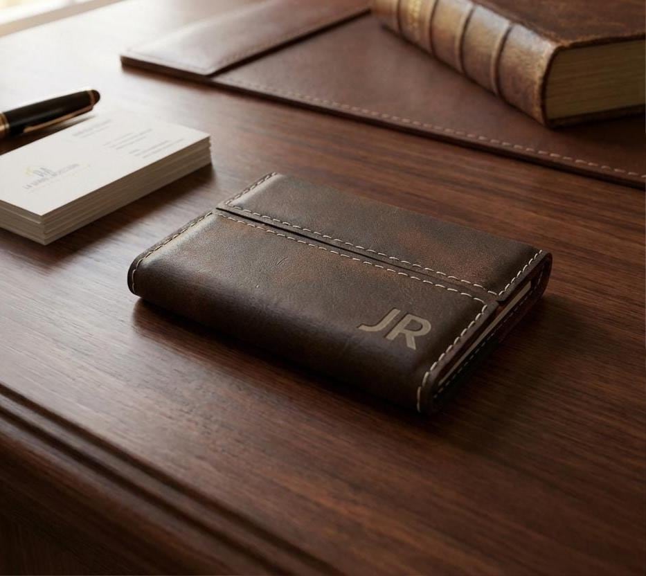Personalized Business Card Holder | Custom Vegan Leather Card Case & Monogrammed Promotion Gift for Him