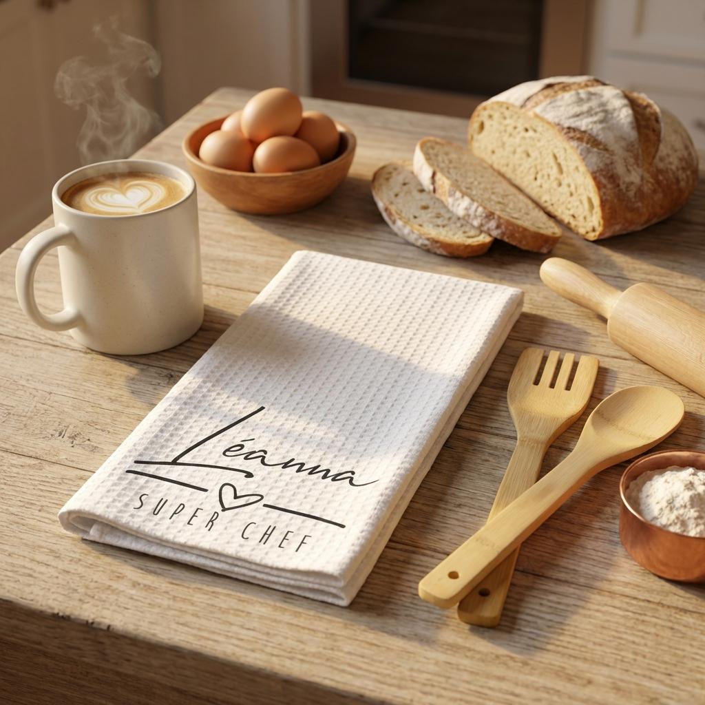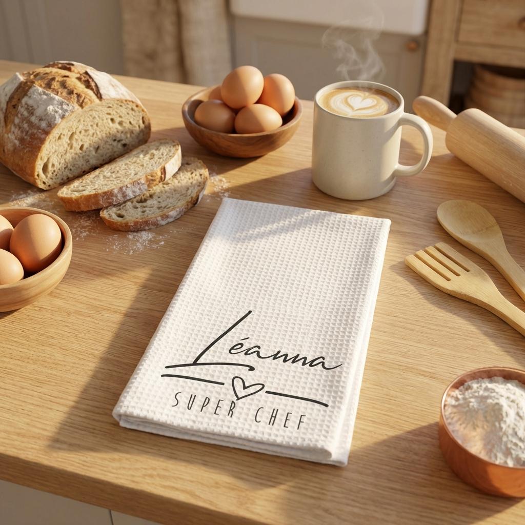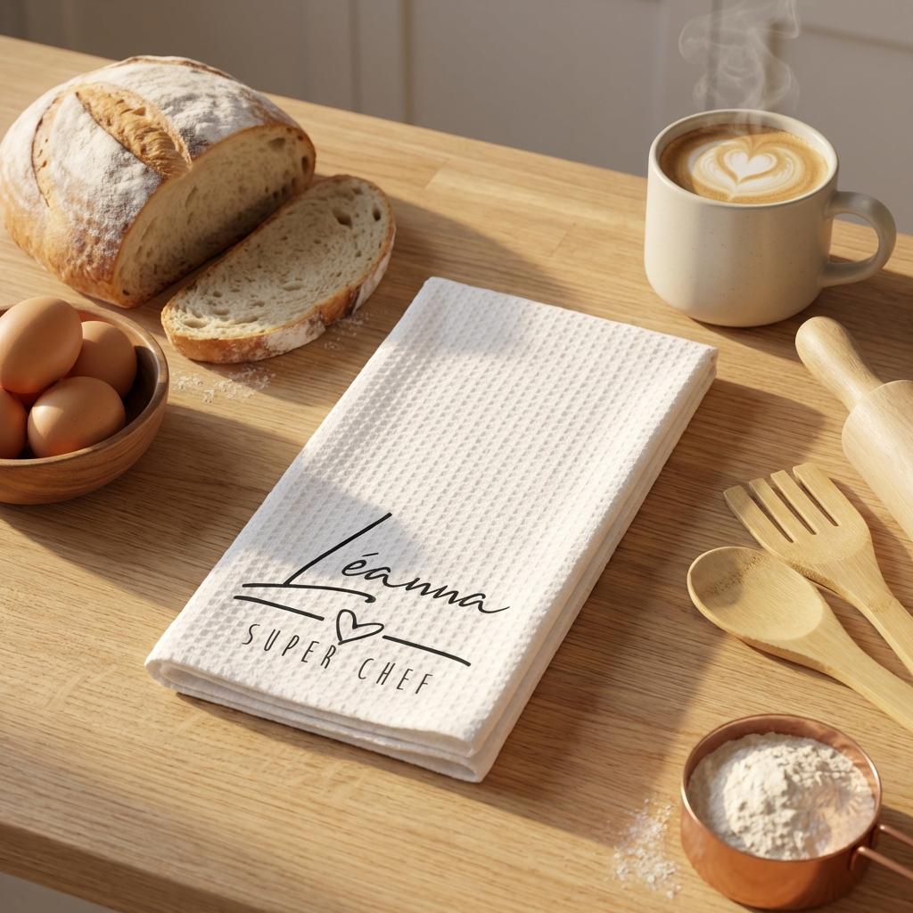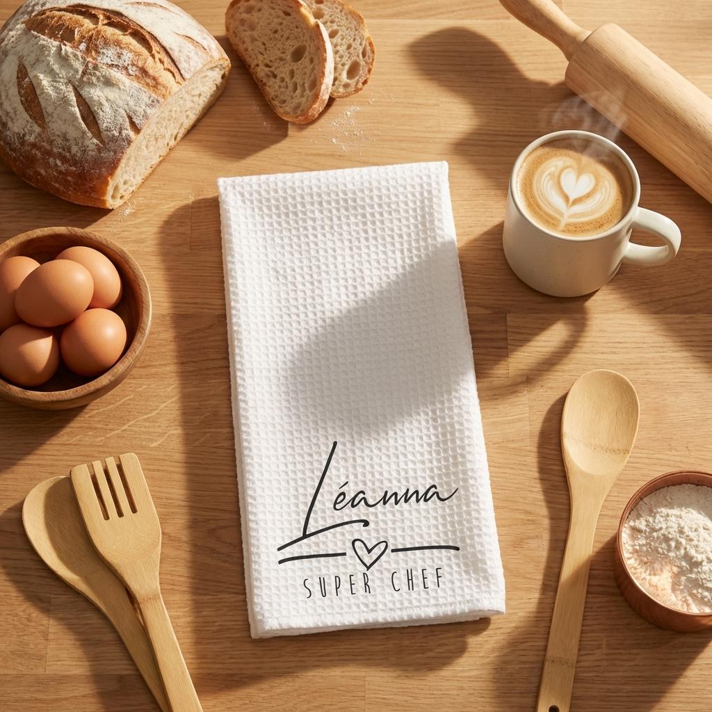 Add a personal touch to your kitchen with this personalized printed tea towel. professionally printed for a permanent finish, this towel is designed to be both a functional kitchen tool and a stylish decorative accent. The high-definition print is embedded into the fabric, ensuring it remains soft and vibrant through repeated washings.
