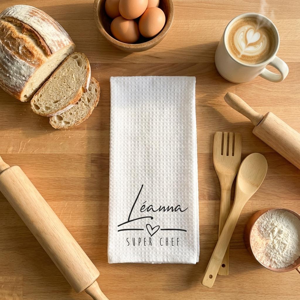 Personalized Kitchen Tea Towel, Custom Printed Name Hand Towel, Gift for Home Chef