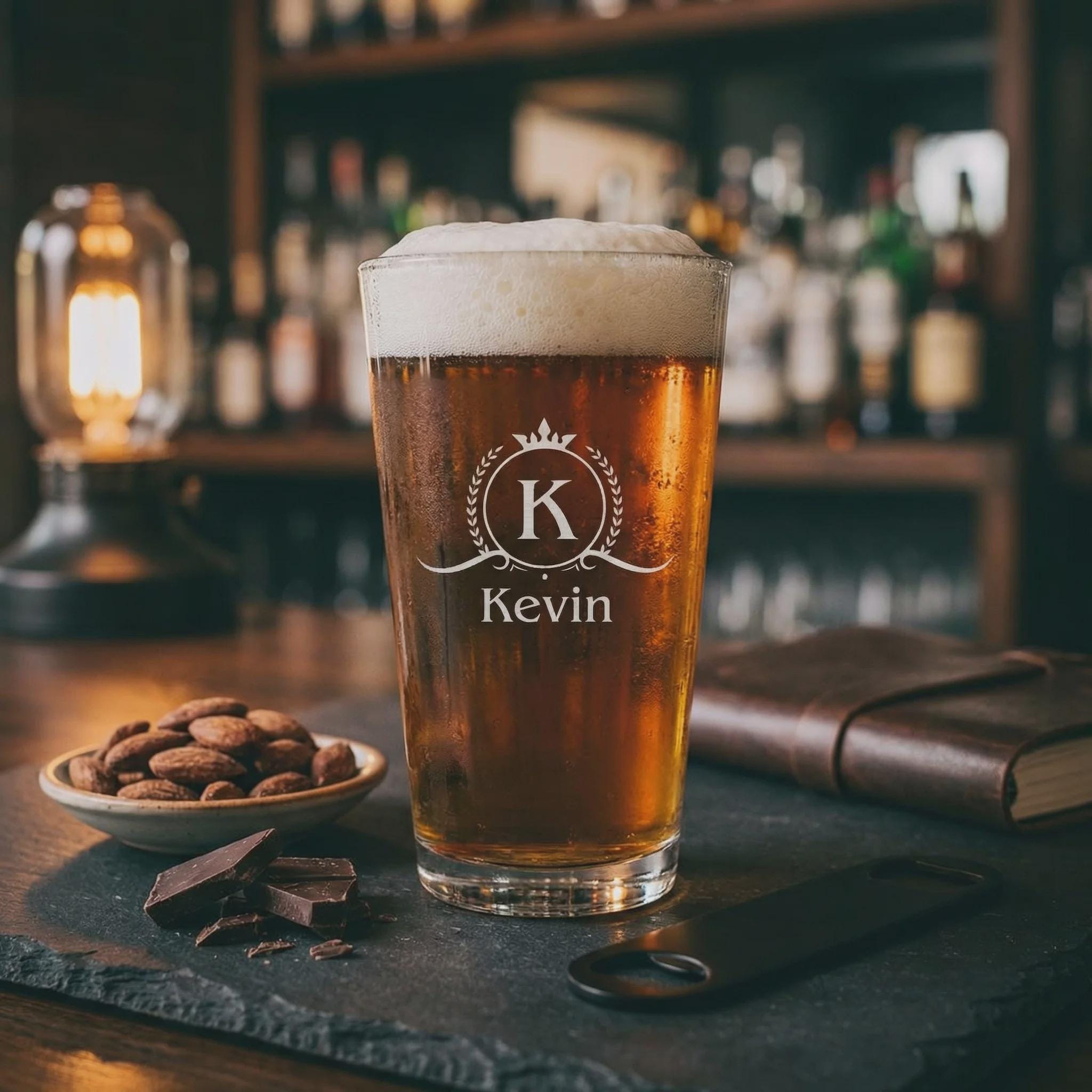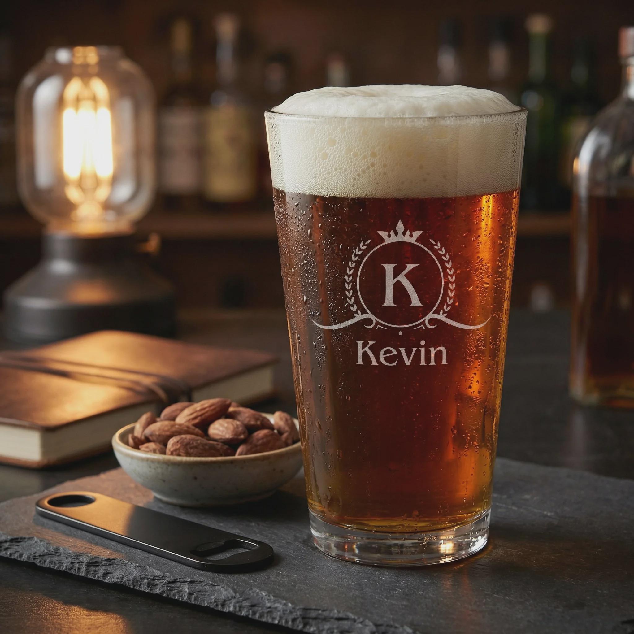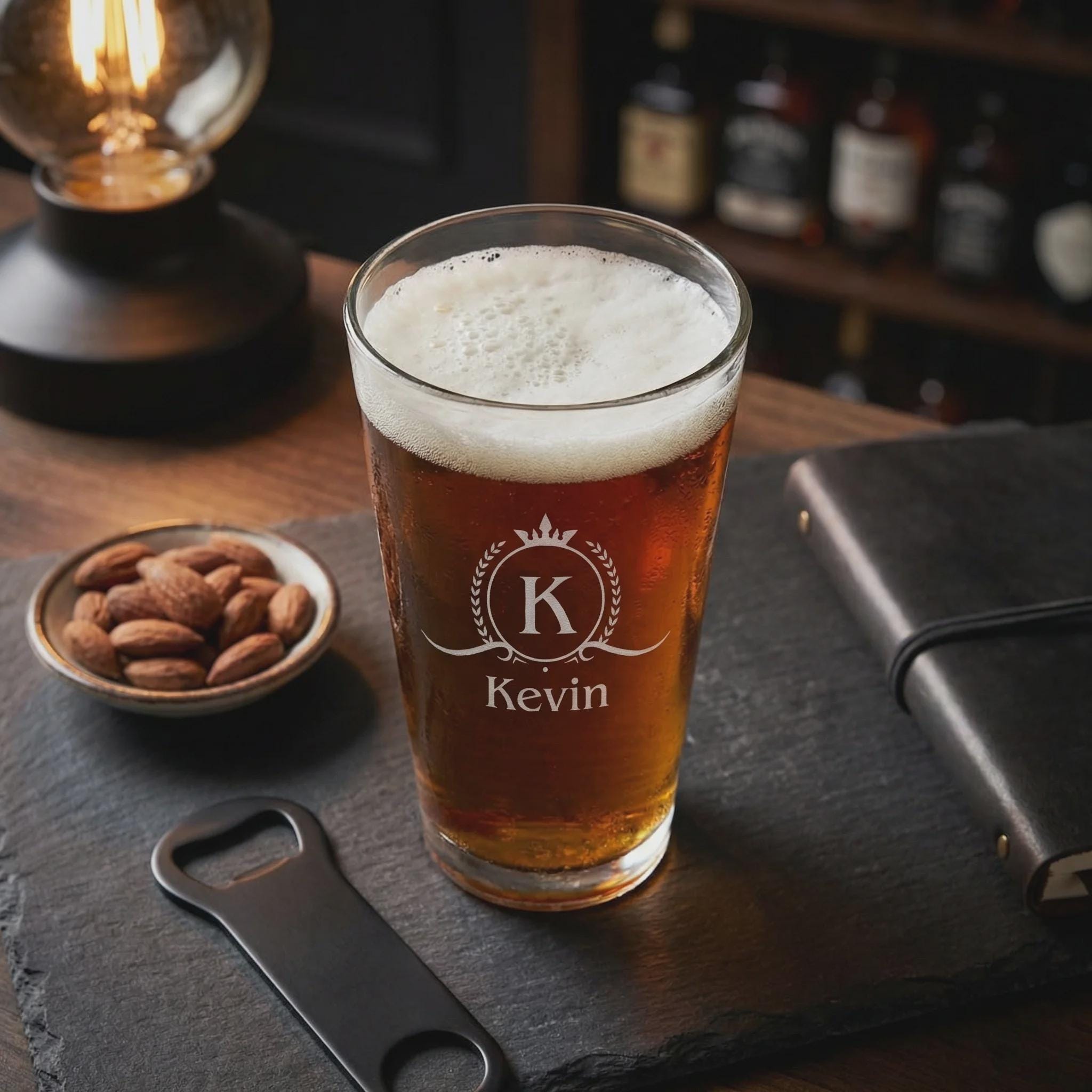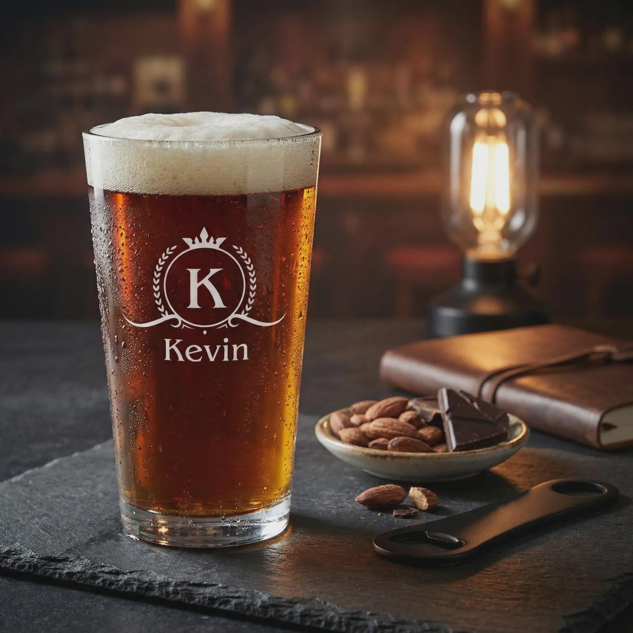 Elevate your home bar experience with this personalized 16oz pint glass. Hand-crafted using professional-grade laser etching, each glass features a permanent, high-contrast finish that will never peel or fade. With a classic tumbler shape that fits comfortably in hand, it serves as a professional-grade drinking vessel for craft beers, cocktails, or everyday use.