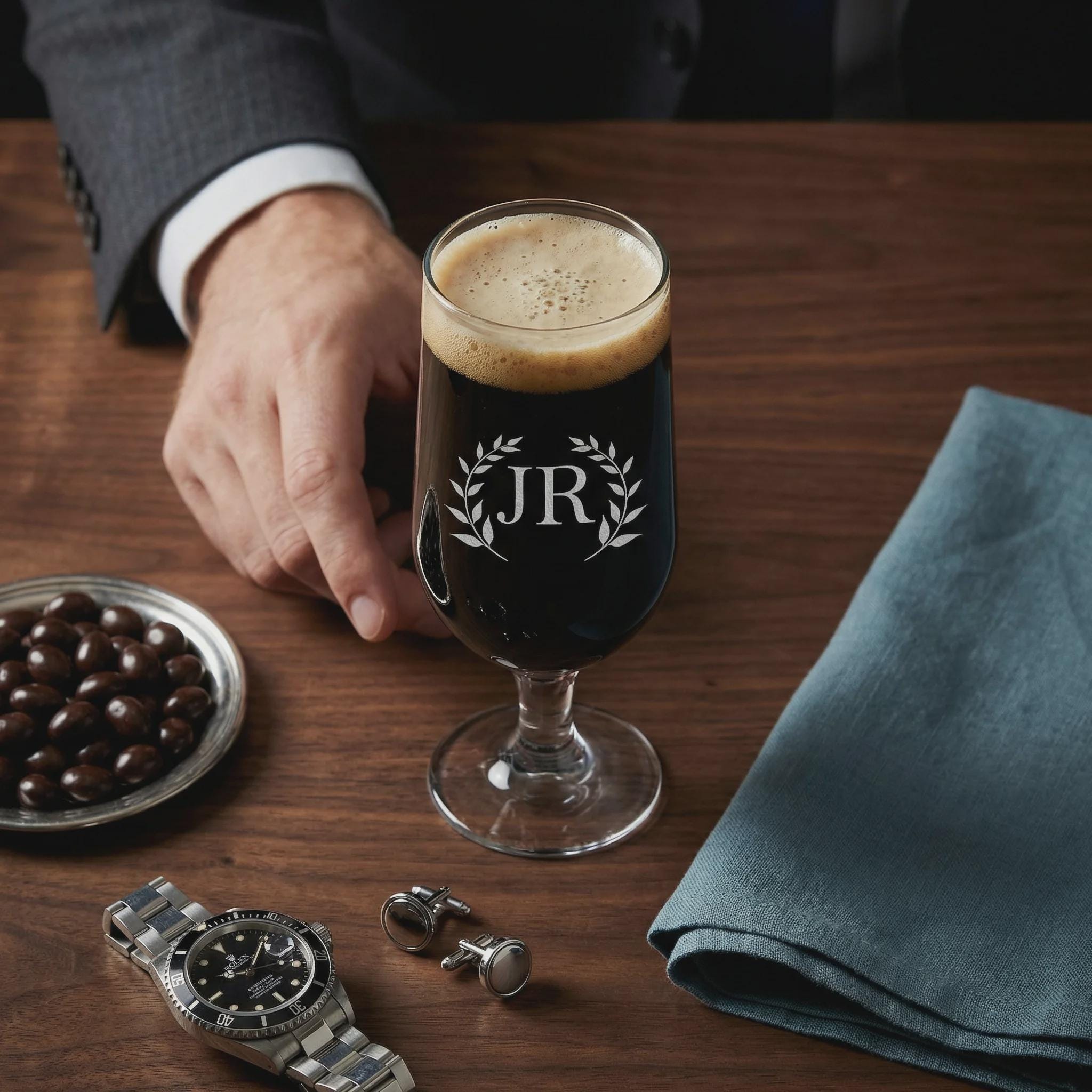 Father’s Day Surprise: Elevate Dad's relaxation time with a customized glass that shows his initials with pride.