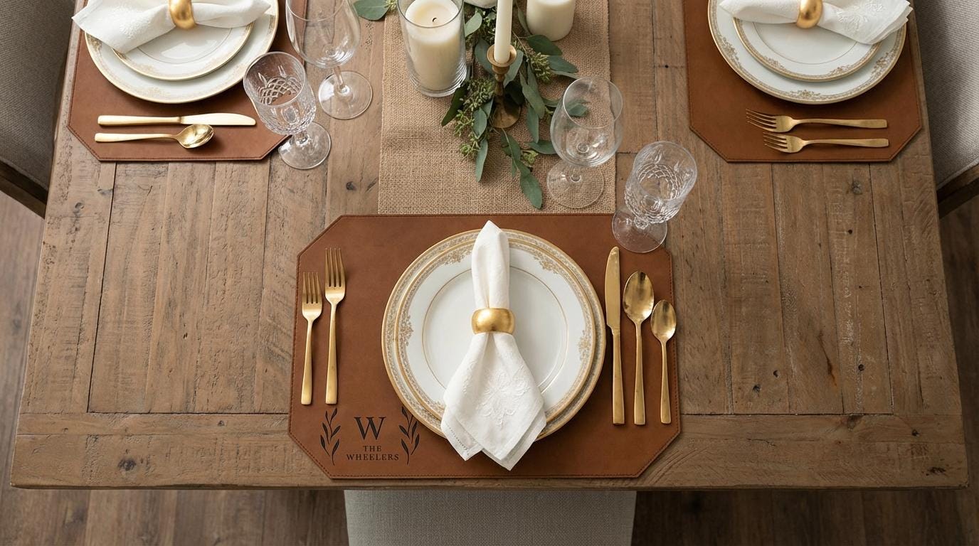 Personalized Leatherette Placemats for Dining Table, Monogrammed Placemat, Customized Kitchen Decor, Housewarming Gift, Gift for the couple