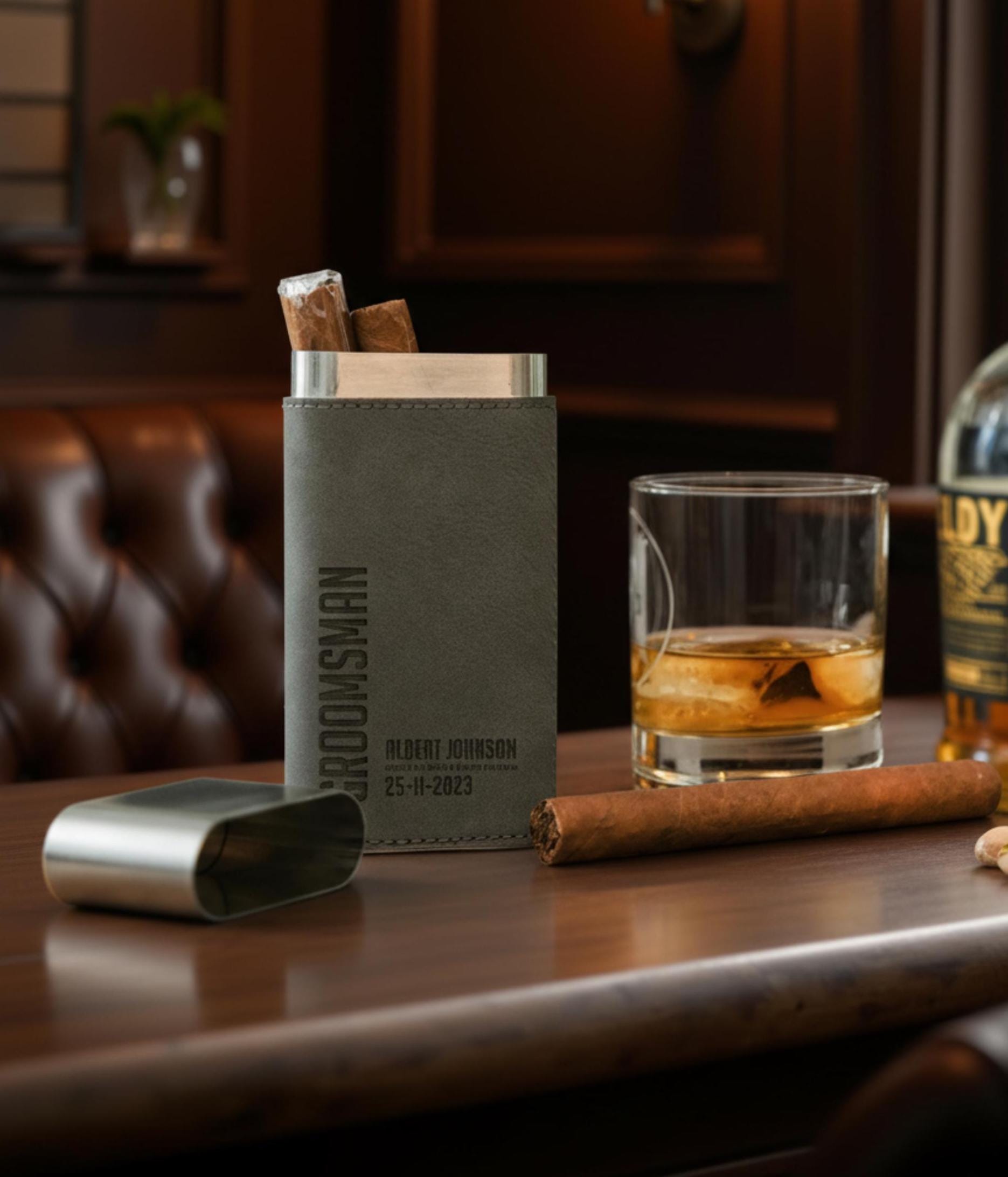 This leatherette cigar case is also a thoughtful groomsman gift or Father's Day gift.