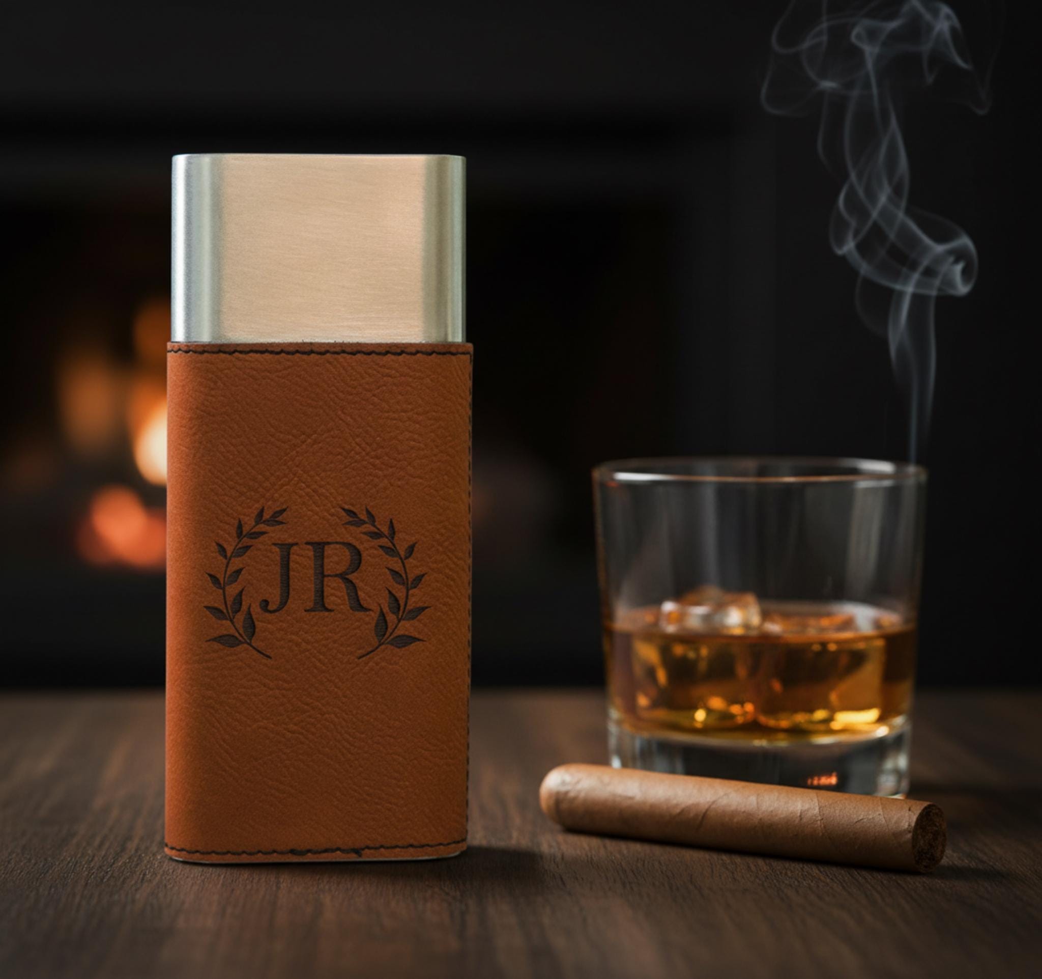 Carry your cigars in style with our personalized cigar case! This monogrammed cigar case with a cutter is the perfect travel companion for any cigar enthusiast.