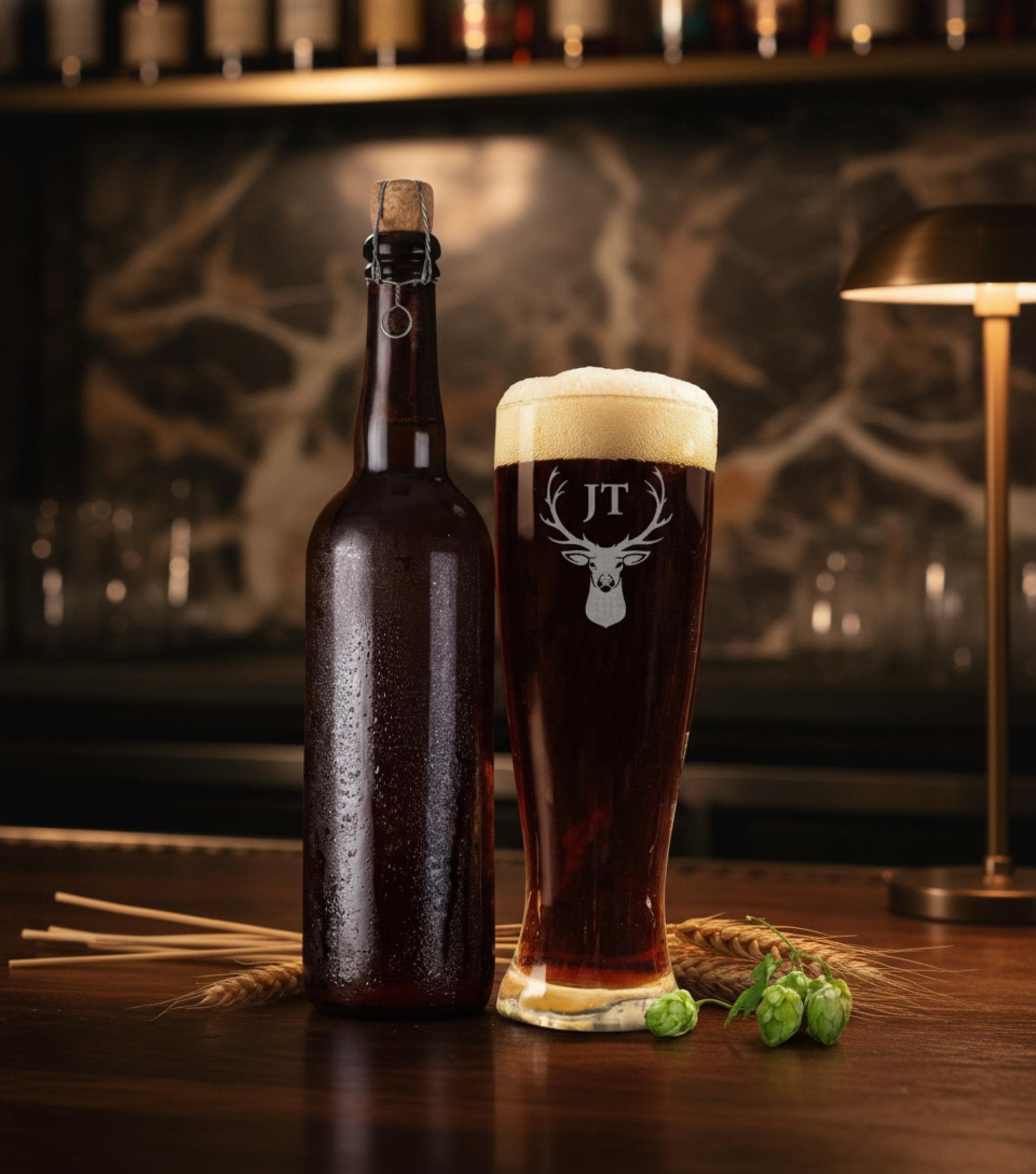 Personalized Beer Glass - Elk Design: Custom Engraved Pilsner Glass, Perfect for Father's Day, Grandpa, Groomsman, Best Man, Beer Lover Gift