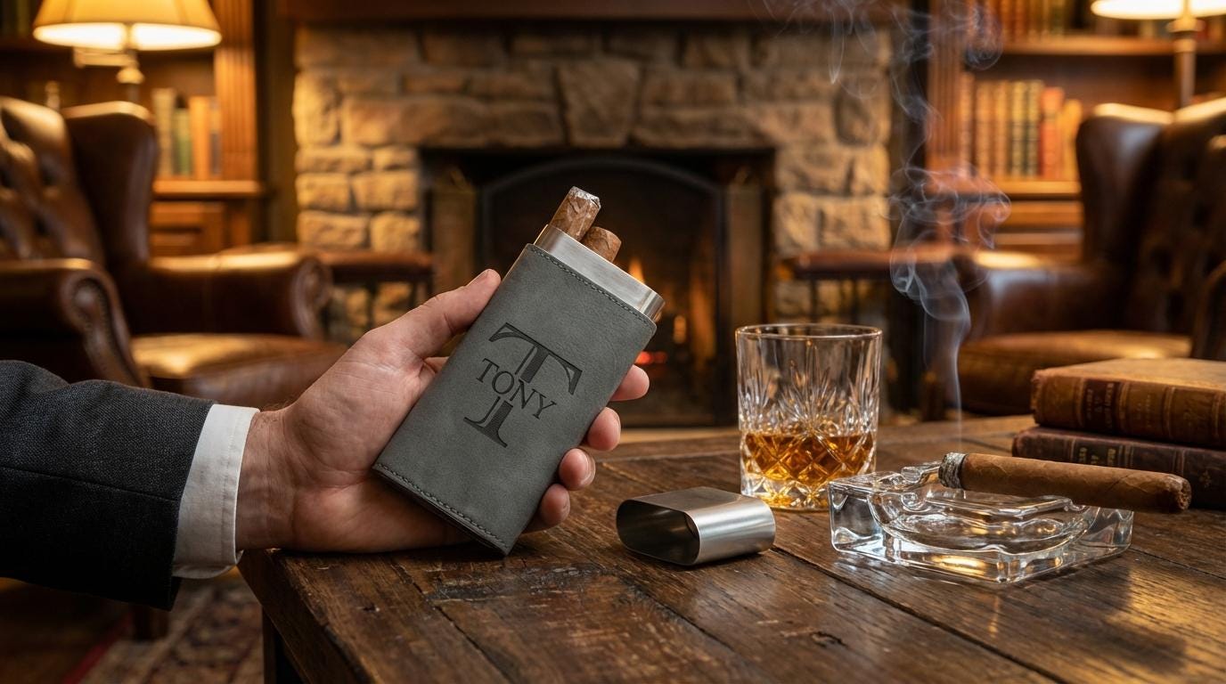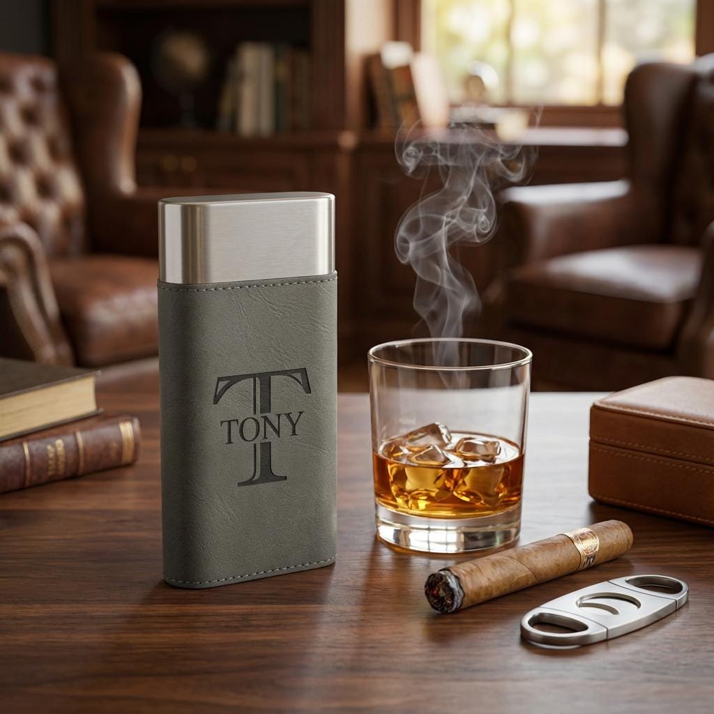 Our leatherette personalized cigar case with a cutter is a great gift for cigar enthusiasts. It allows them to carry their favorite cigars in style and also ensures they have a cutter on hand to cut them to their preferred size.