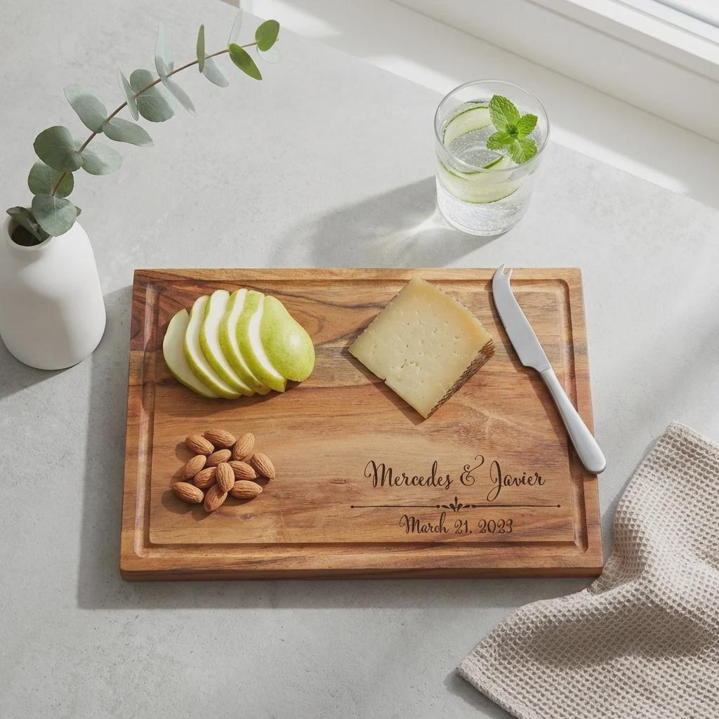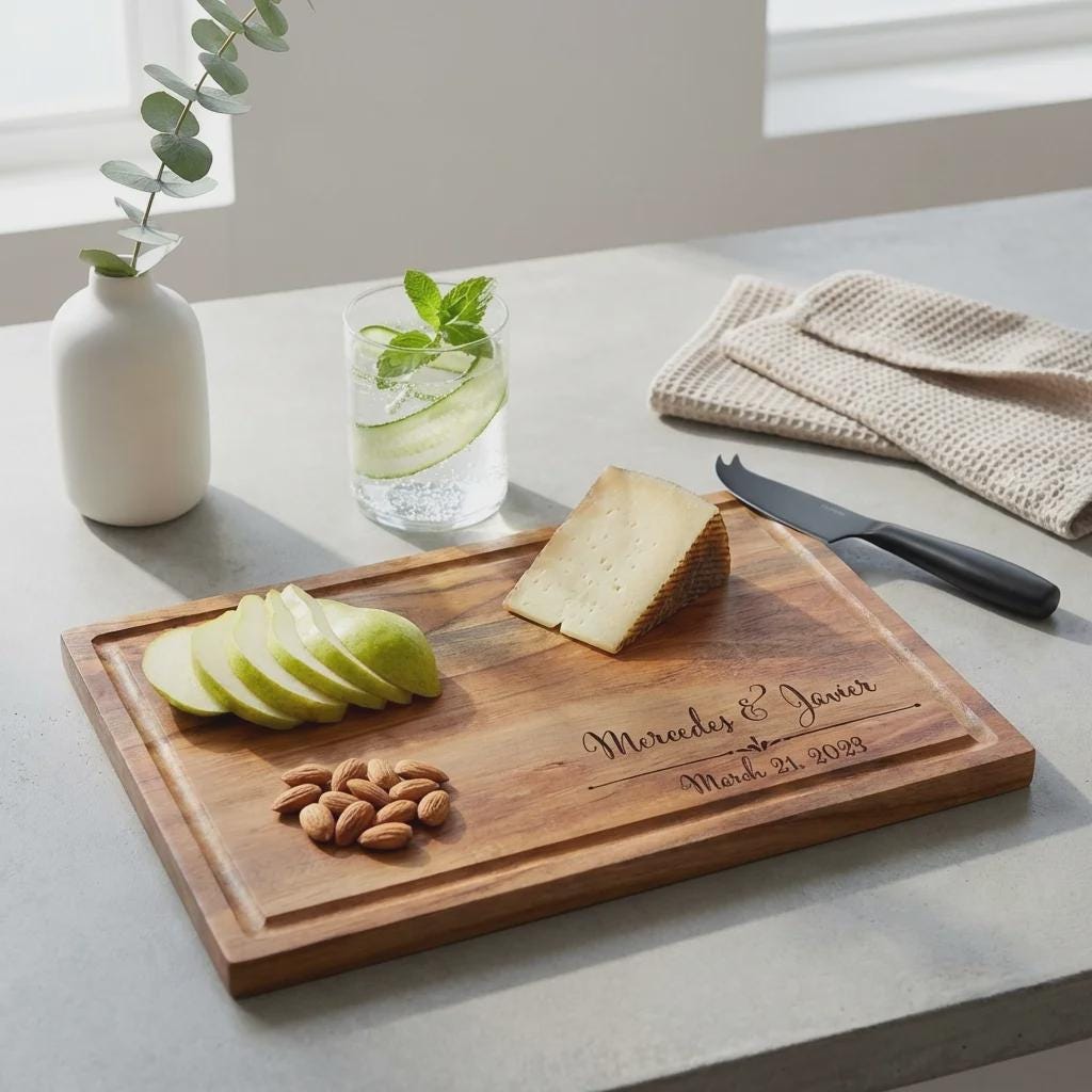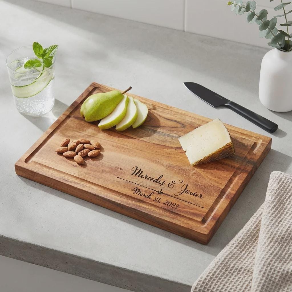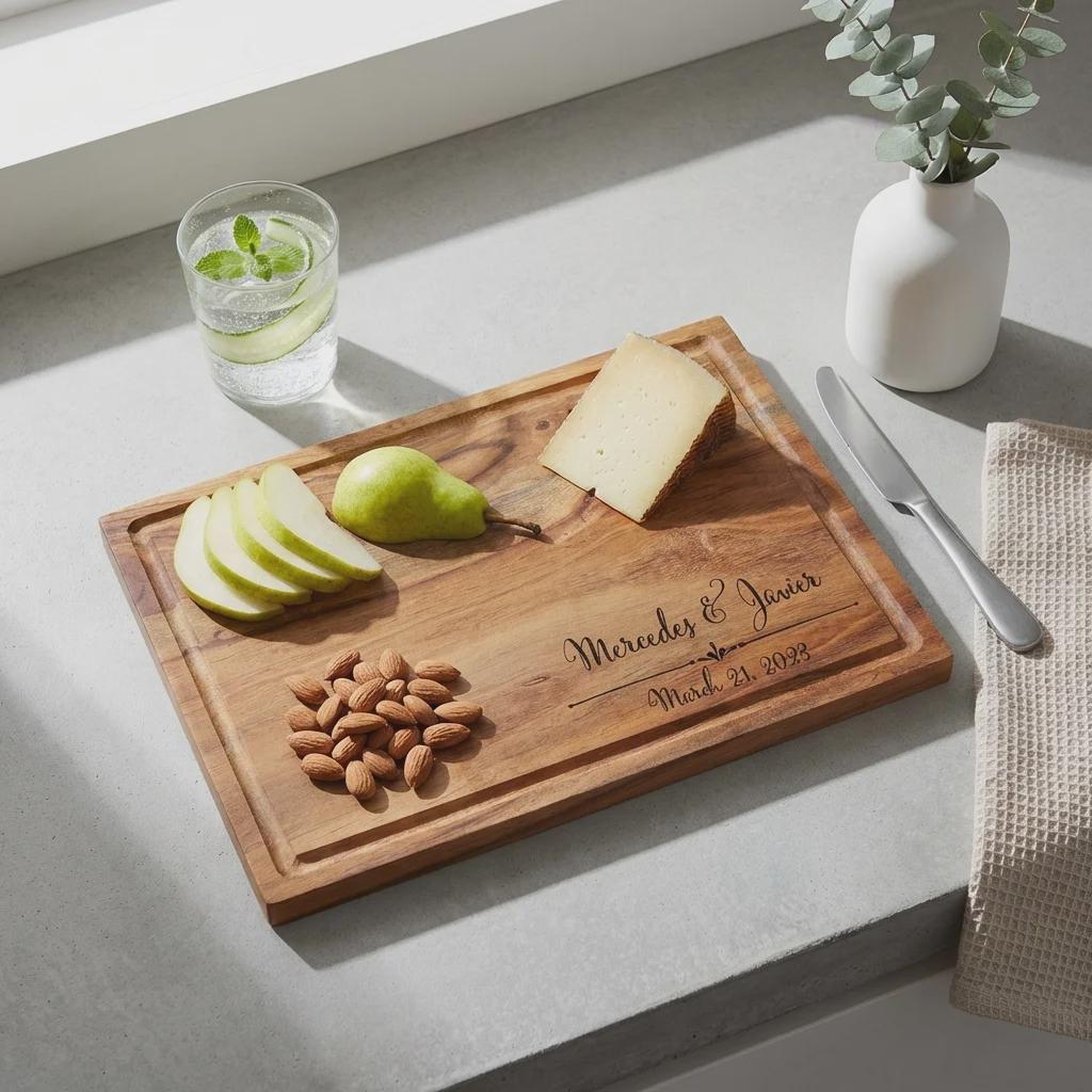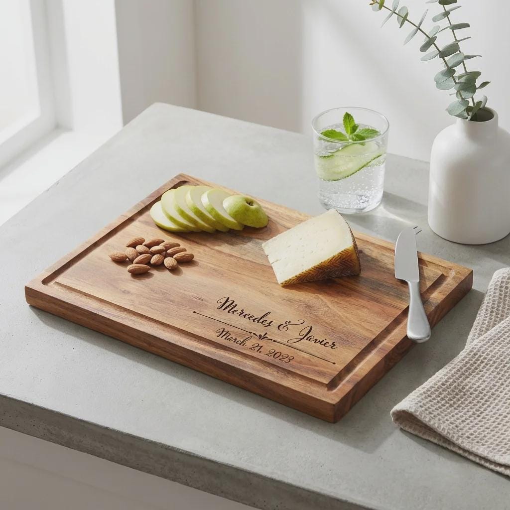 Personalized cutting board, Gift For The Couple: Custom Engraved Charcuterie Board with Juice Groove, Wedding, Housewarming, Engagement Gift