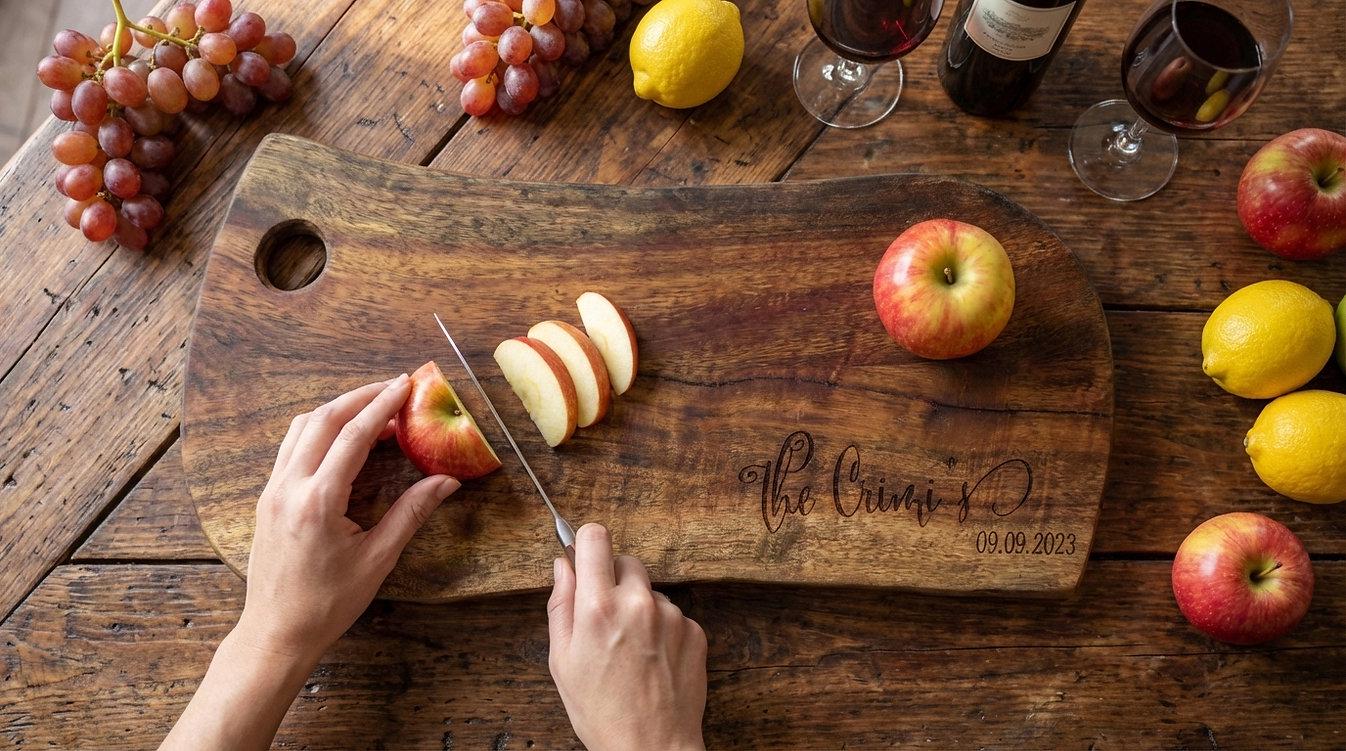 But what makes our cutting board truly special is the option to personalize it with your own unique design! Choose from a range of customization options to create a one-of-a-kind cutting board that reflects your style and personality. Whether you want to add your family name and special date or choose from 25 different design options, we've got you covered.