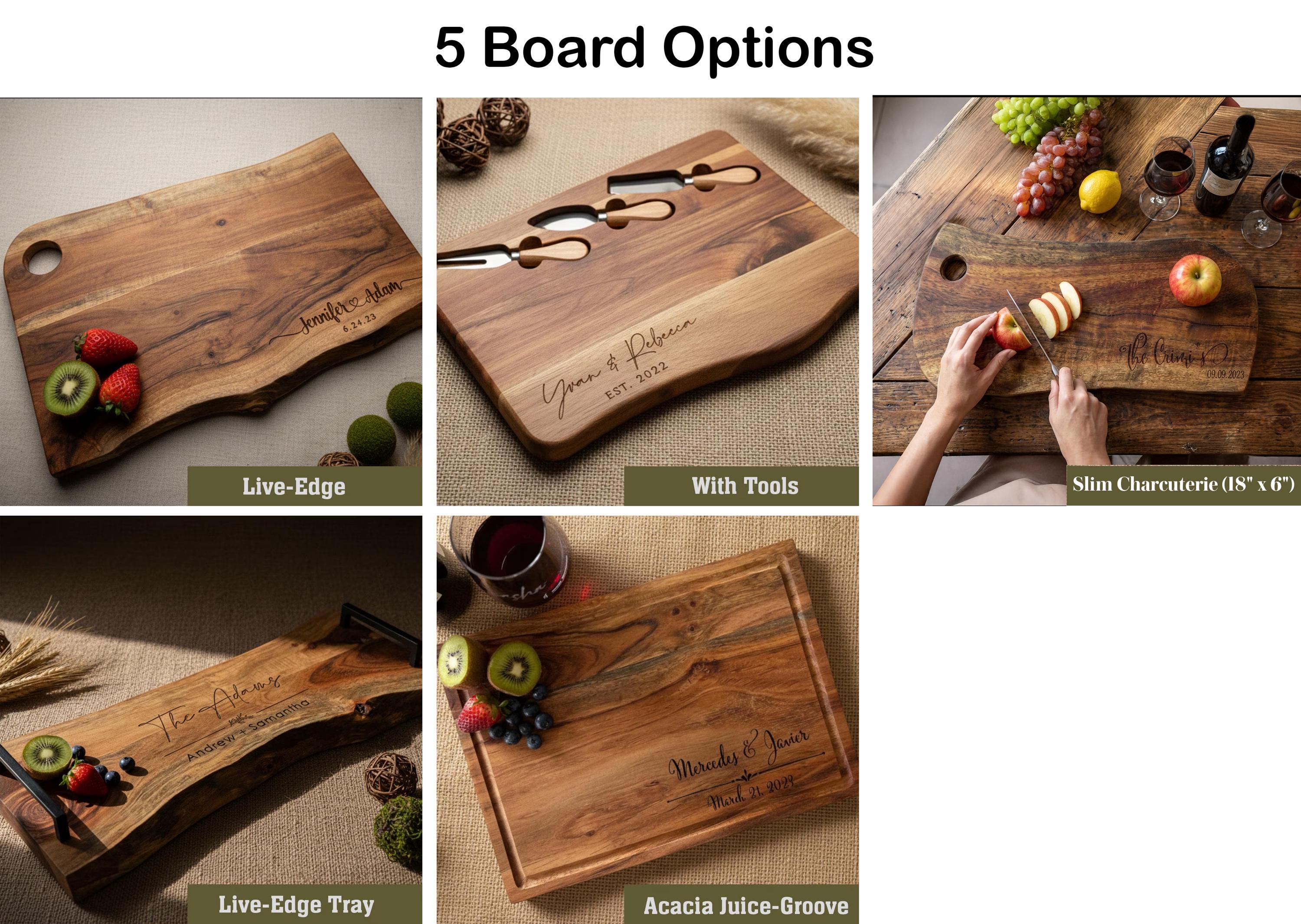 Personalized live edge cutting board, custom laser engraved board, housewarming gift, Gift for the couple, wedding gift, Christmas gift