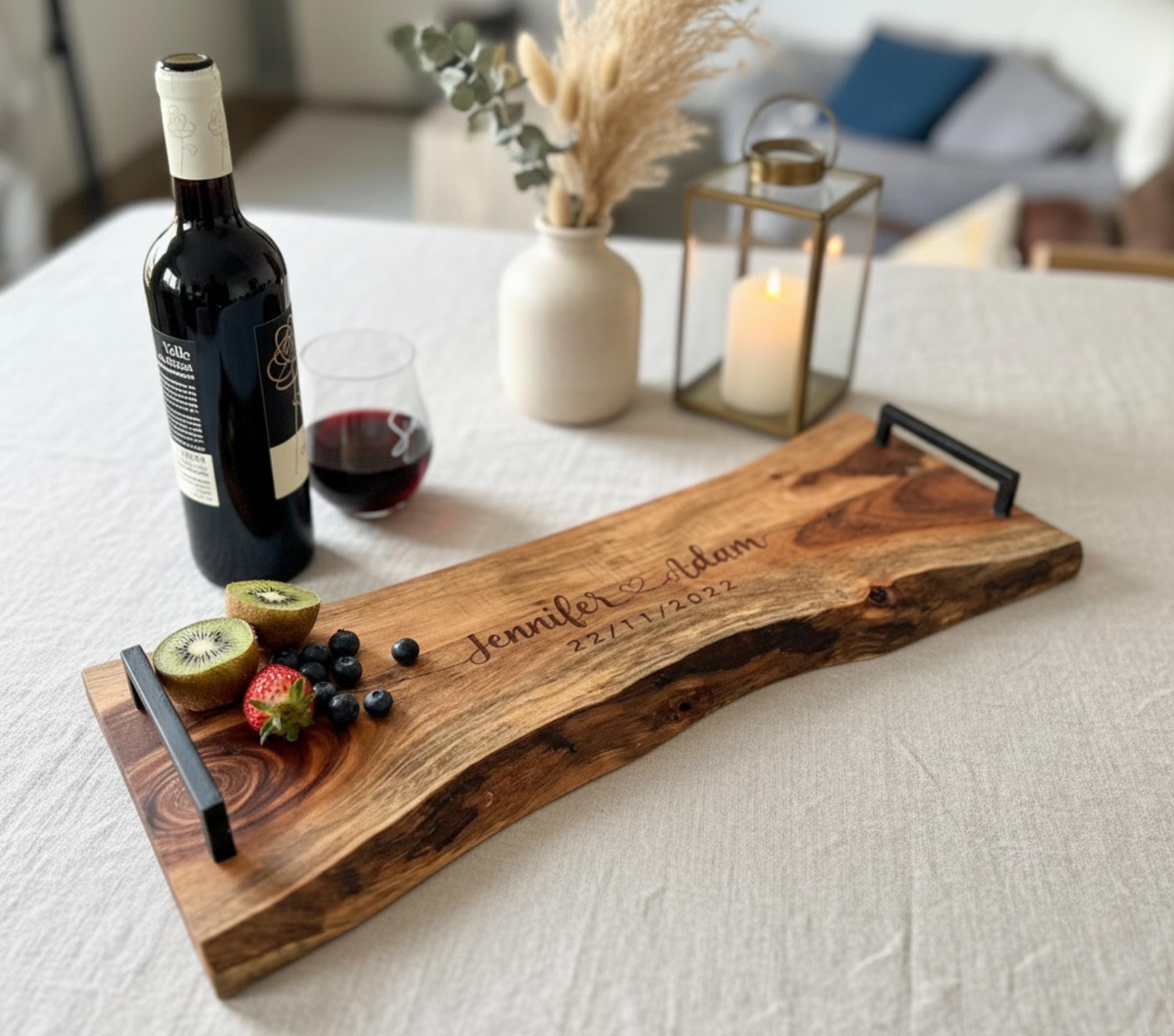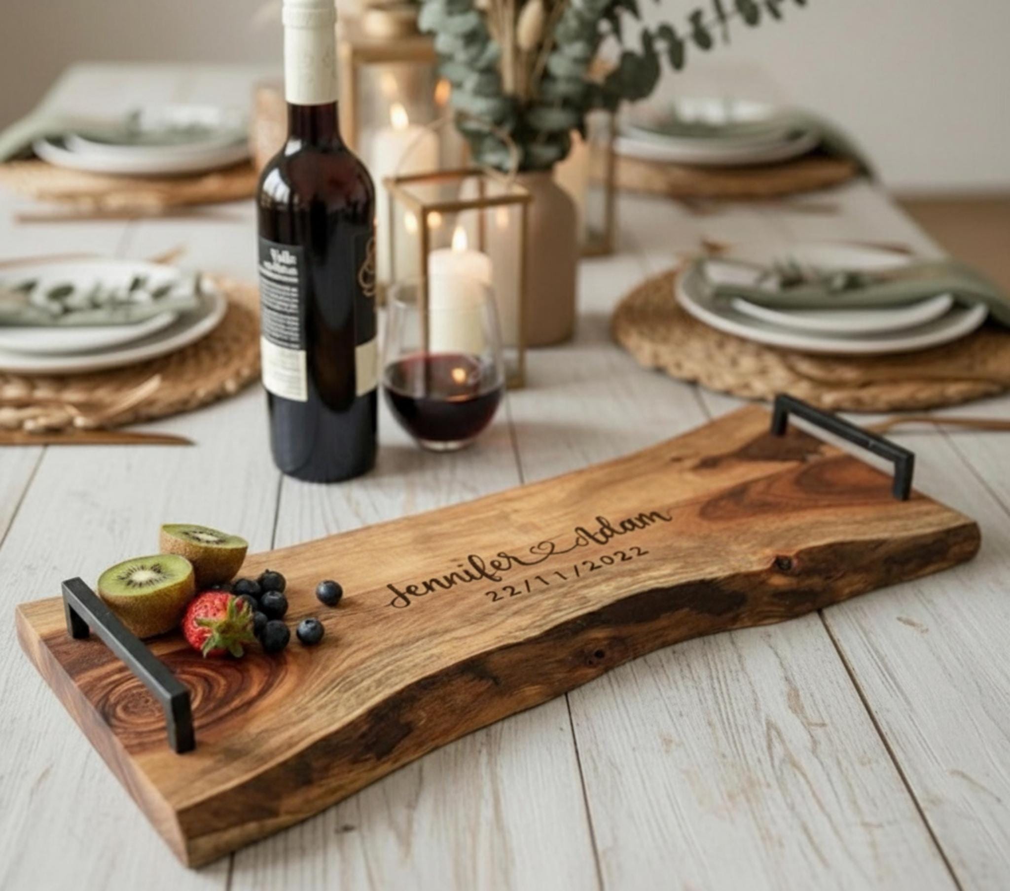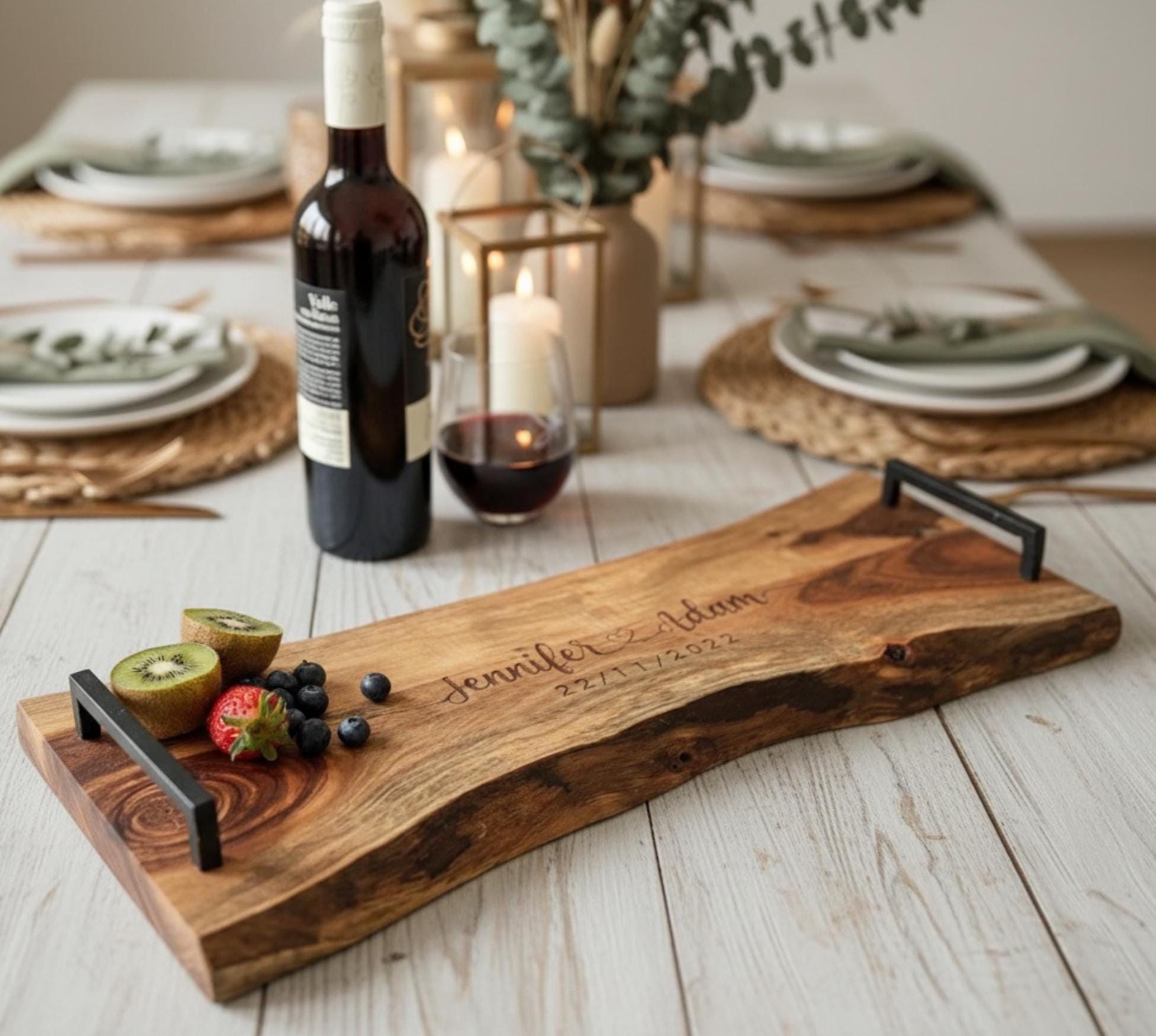 Don't miss out on this exceptional gift to create lasting memories. Order now and let our personalized serving tray with a live edge be the centerpiece of your special moments.