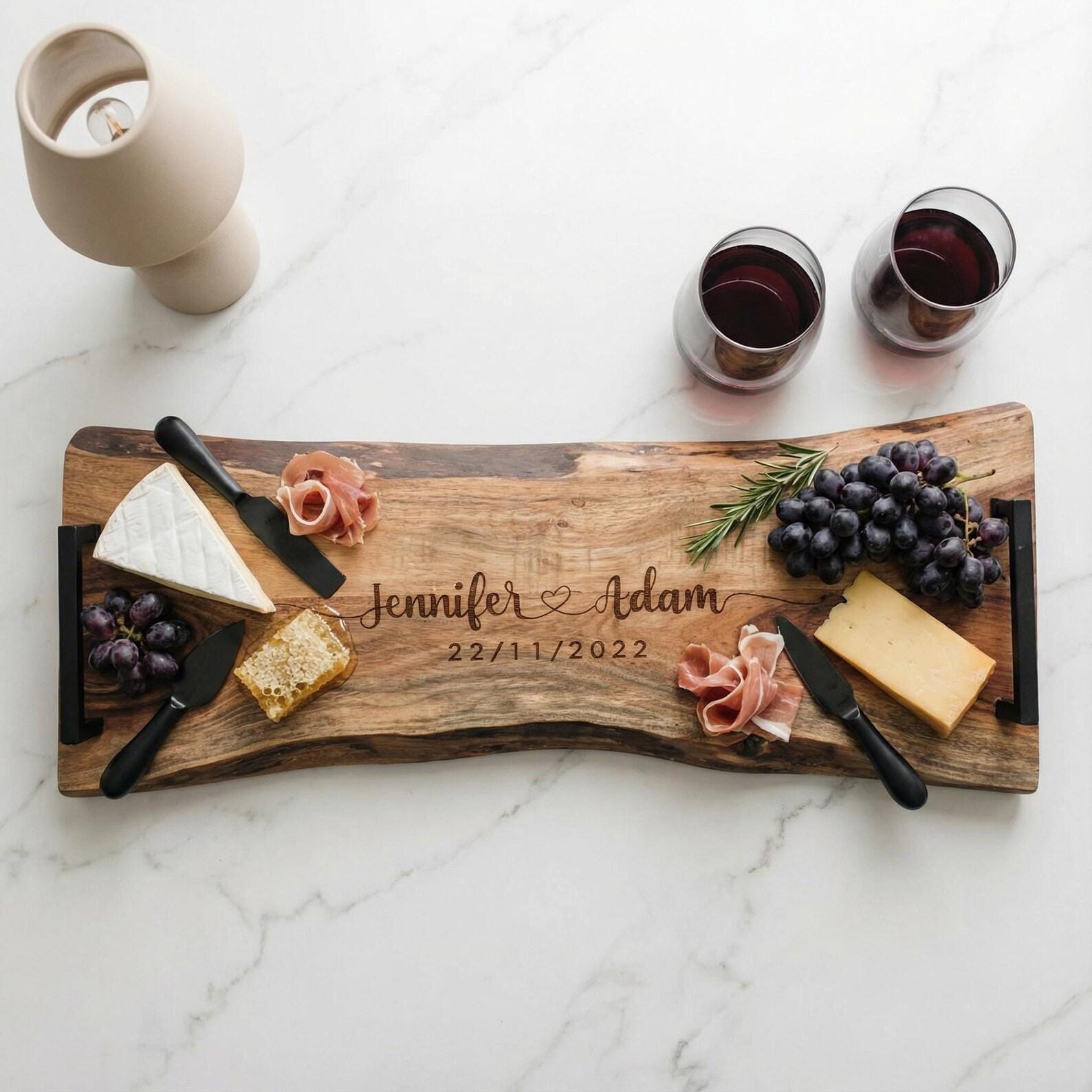 Personalized Live Edge Serving Tray with Handles - Custom-Engraved Wedding Anniversary Platter - Gift for the couple