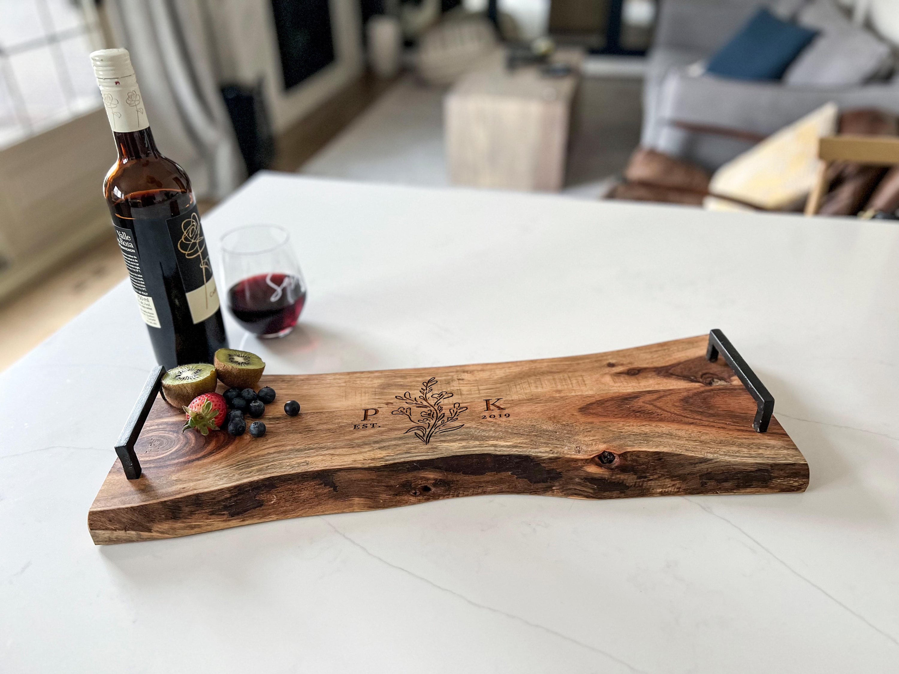 Don't miss out on this exceptional gift that captures cherished memories. Place your order now and let our personalized serving tray with a live edge become the centerpiece of your special moments.