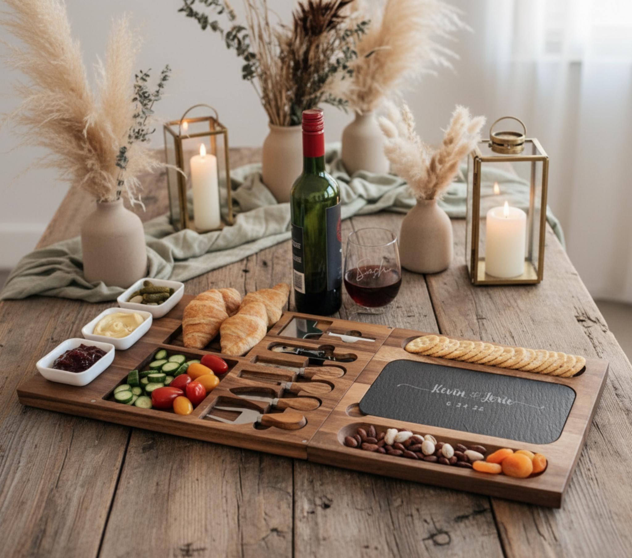 Elevate your hosting game and make a statement at your next gathering! Order your Personalized Cheese & Charcuterie Board Set today and add a touch of personalized sophistication and lasting elegance to every celebration!