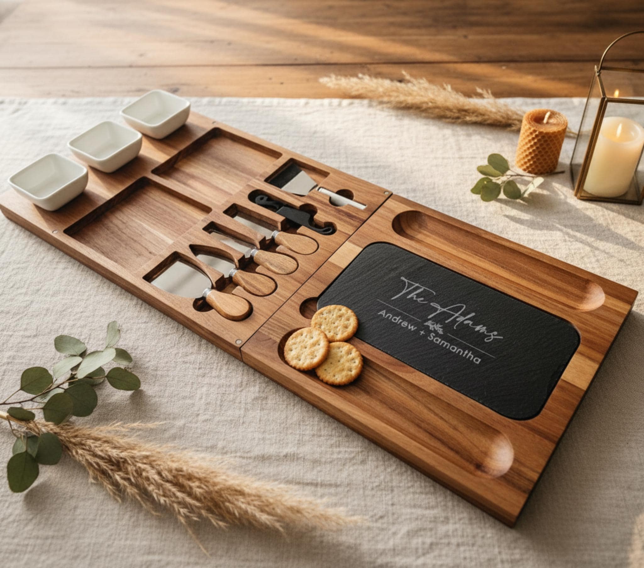 Personalized Charcuterie Board Set | Custom Engraved Cheese Board Gift for Couple | Hosting, Anniversary, Engagement Cutting Boards Gifts