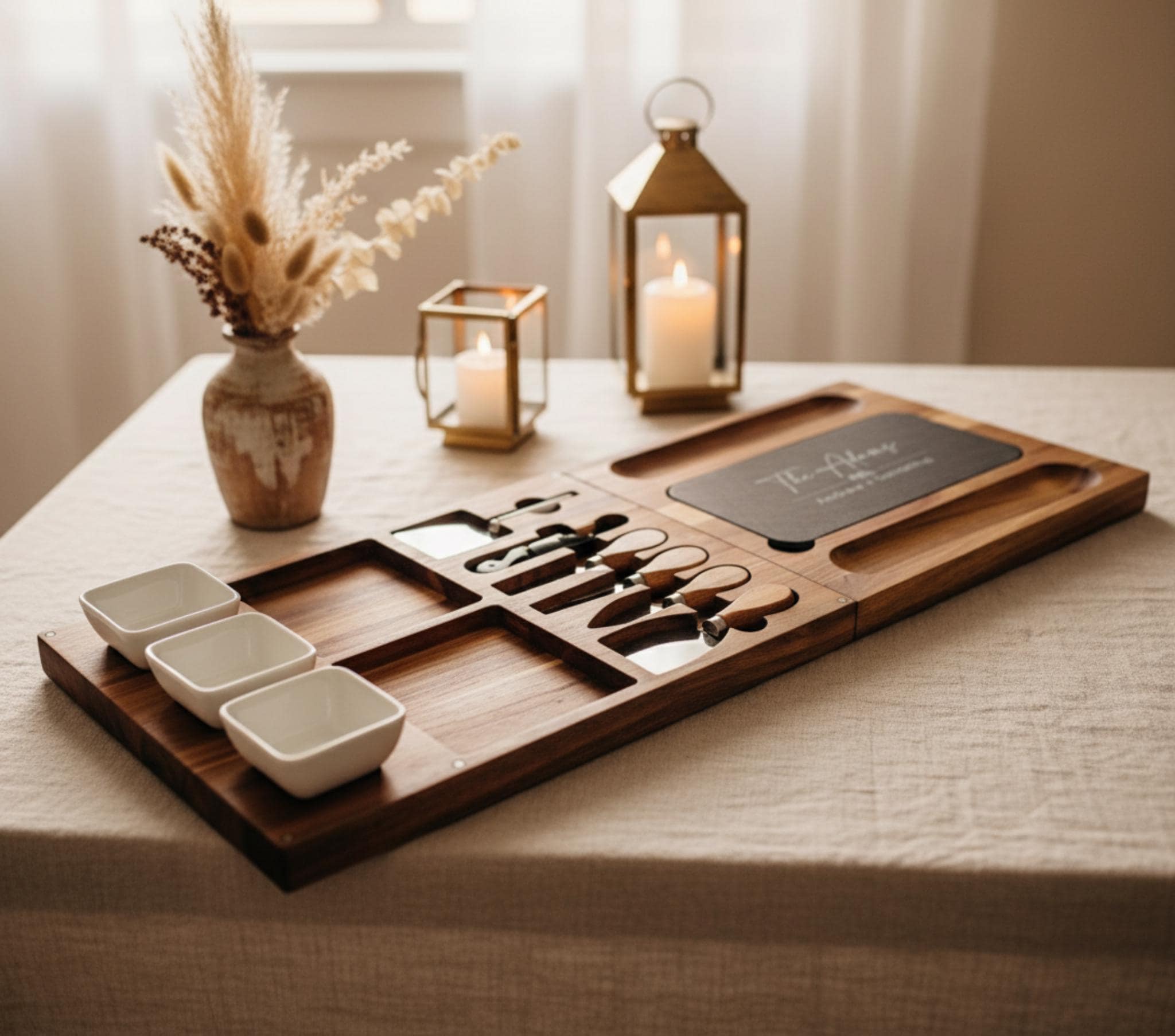 Elevate your hosting game and make a statement at your next gathering! Order your Personalized Cheese & Charcuterie Board Set today and add a touch of personalized sophistication and lasting elegance to every celebration!