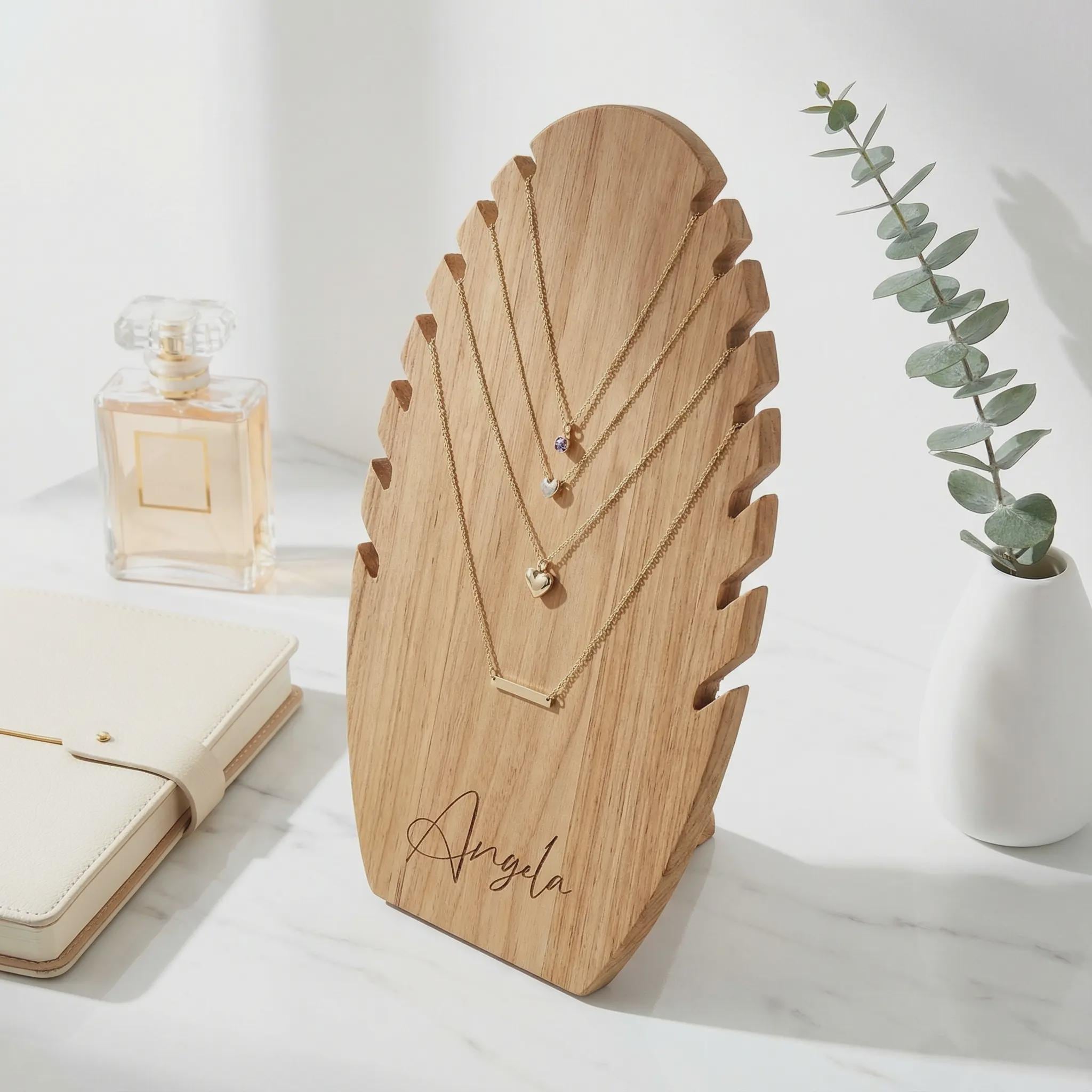Necklace Holder Stand | Personalized Jewelry Organizer & Wood Display for Her