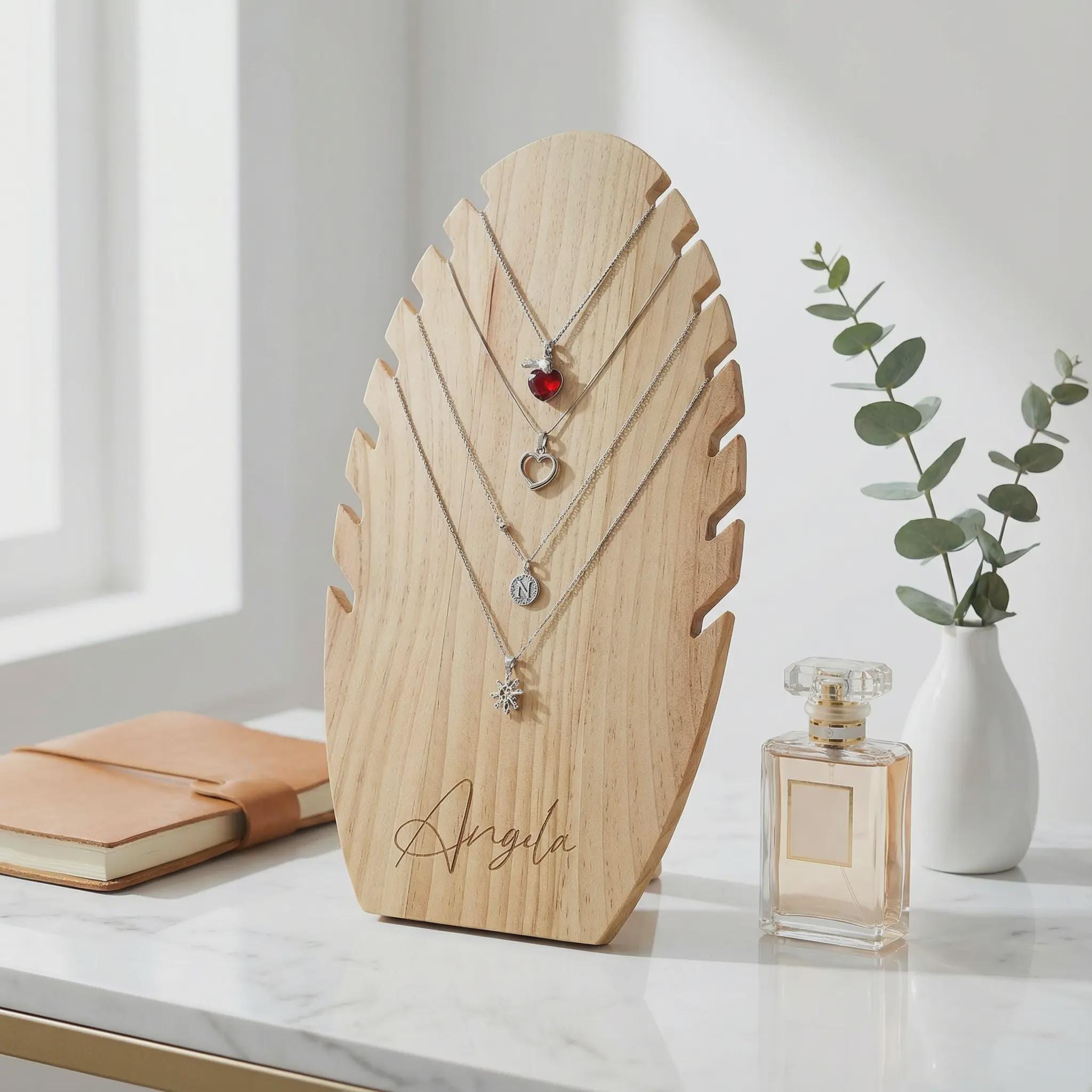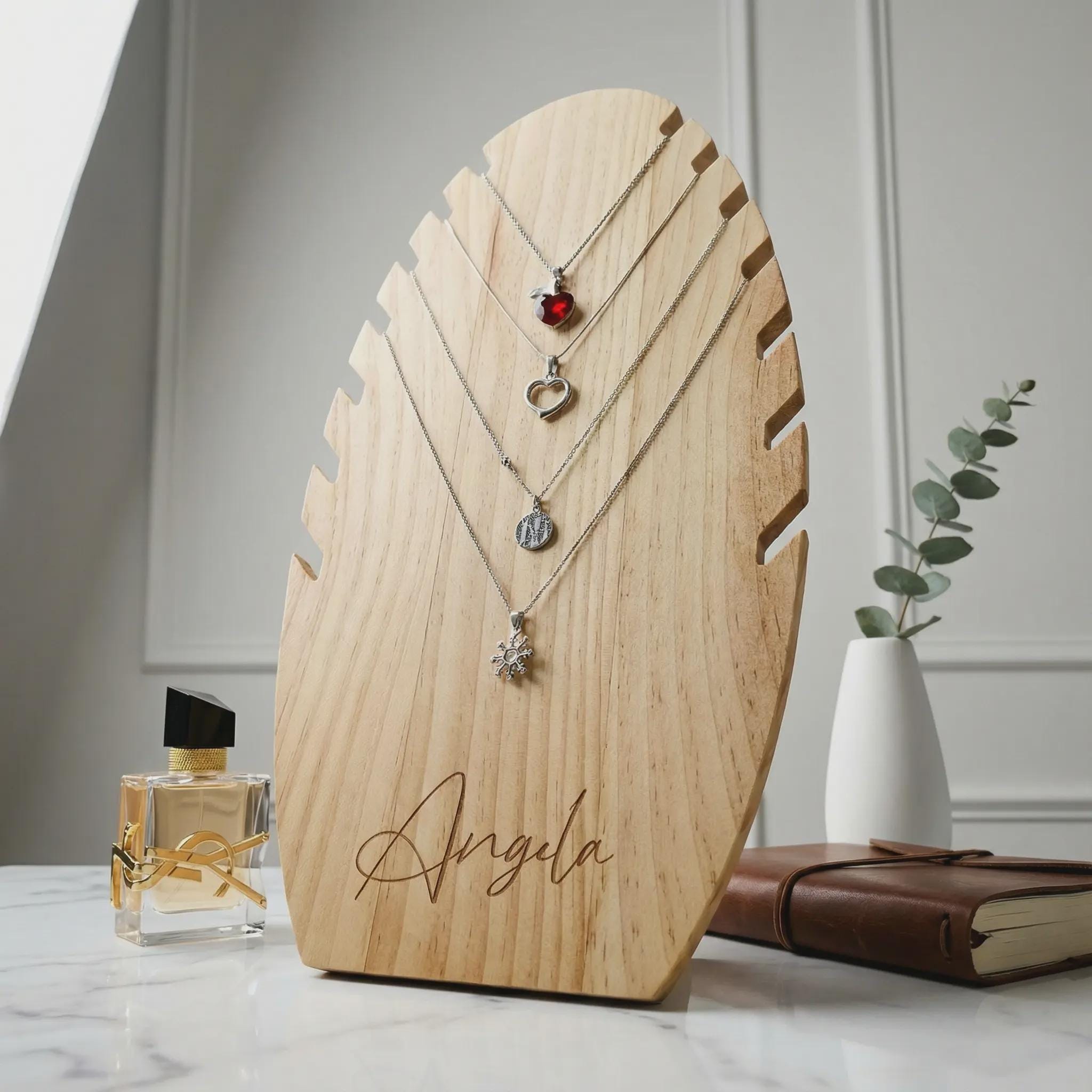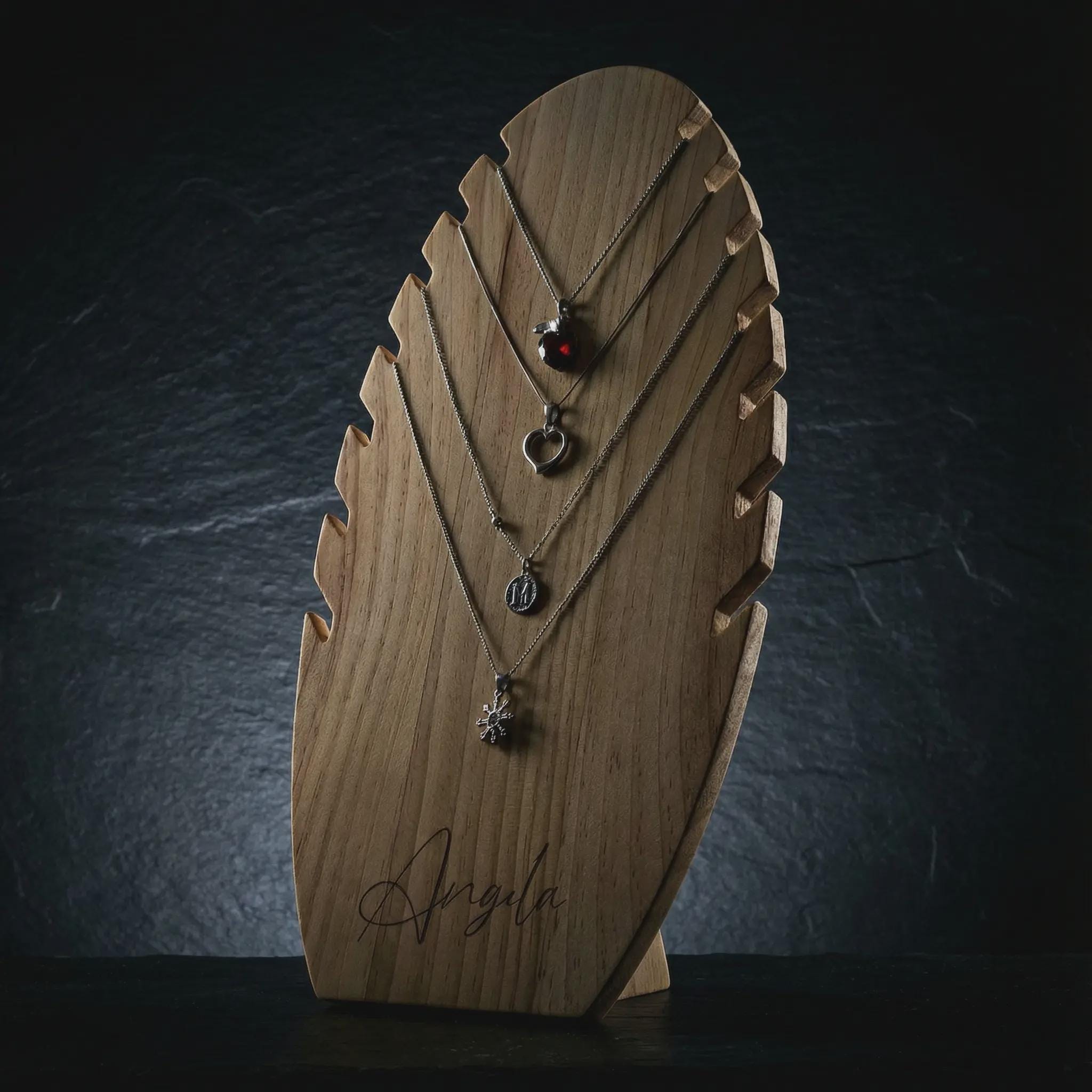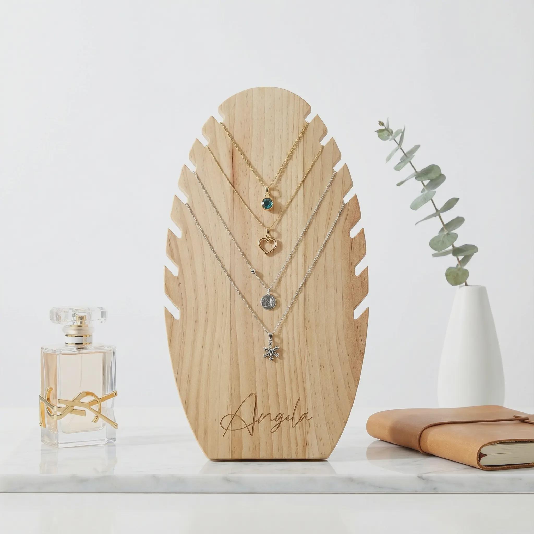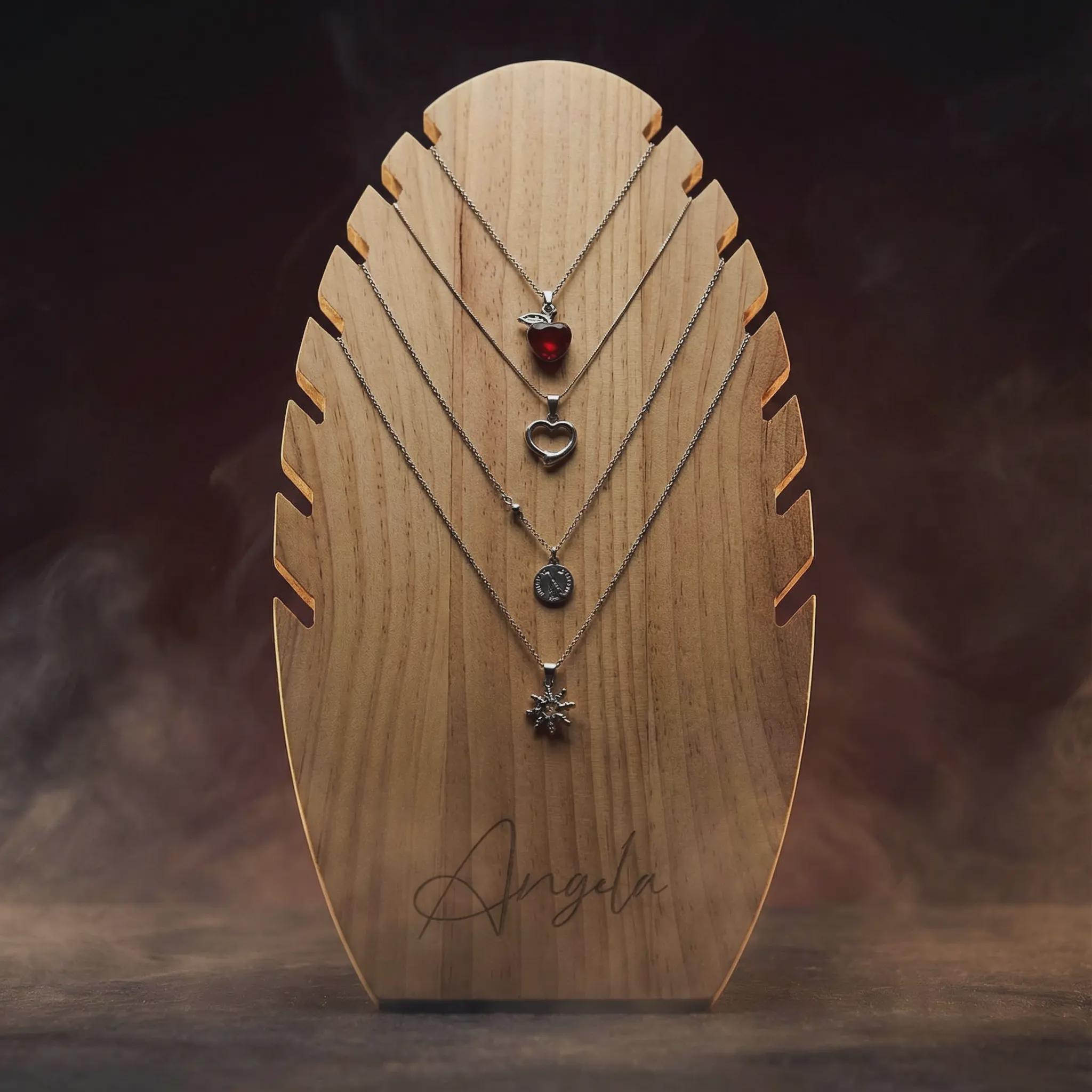 Elevate your jewelry presentation with our exquisite laser-engraved necklace display stand, featuring 7 dedicated slots for pendant chains.