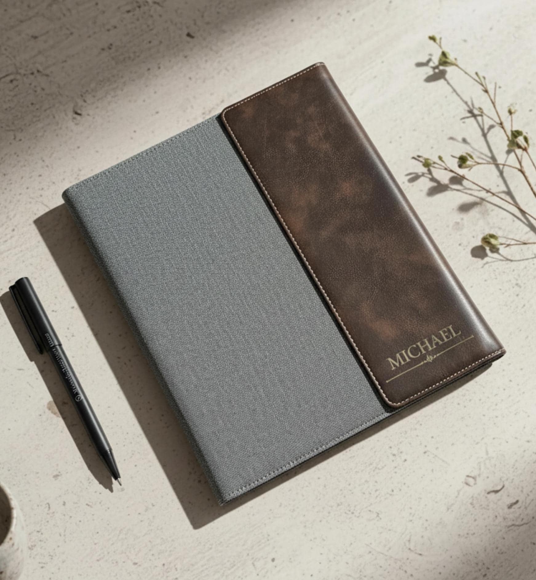 Elevate your organization game today with our leatherette canvas portfolioβa fusion of functionality, style, and personalization.