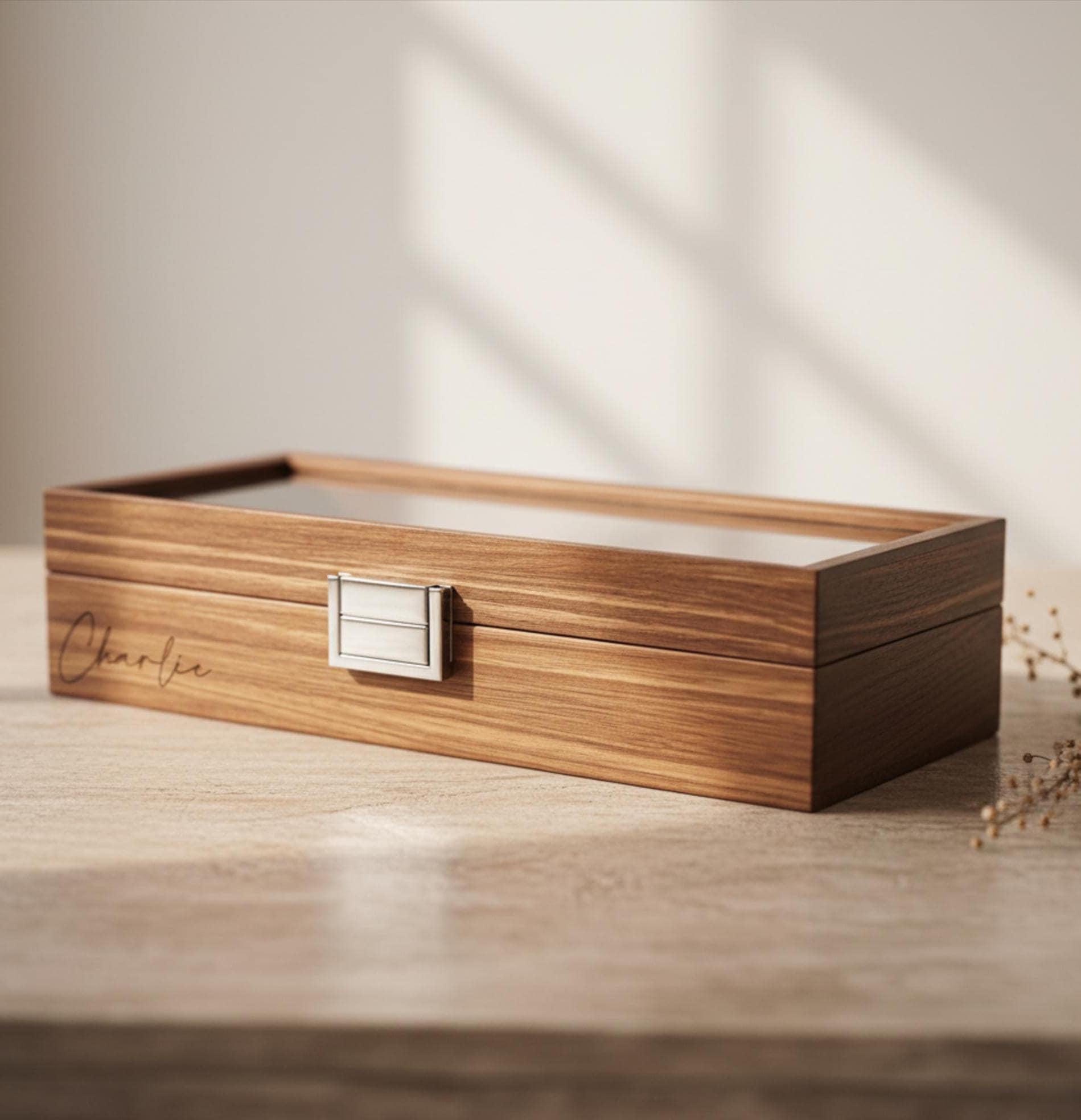 Custom Engraved Watch Box - 6-Watch veneered walnut Case for Men, Personalized Watch Storage, Ideal Gift for Him, Christmas Gift