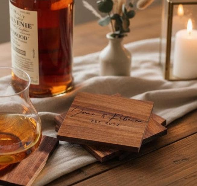 Versatile Gift Idea: Whether it's a wedding, birthday celebration, housewarming, or any special occasion, our personalized walnut coasters are the perfect gift choice. They add a touch of sophistication to any setting.