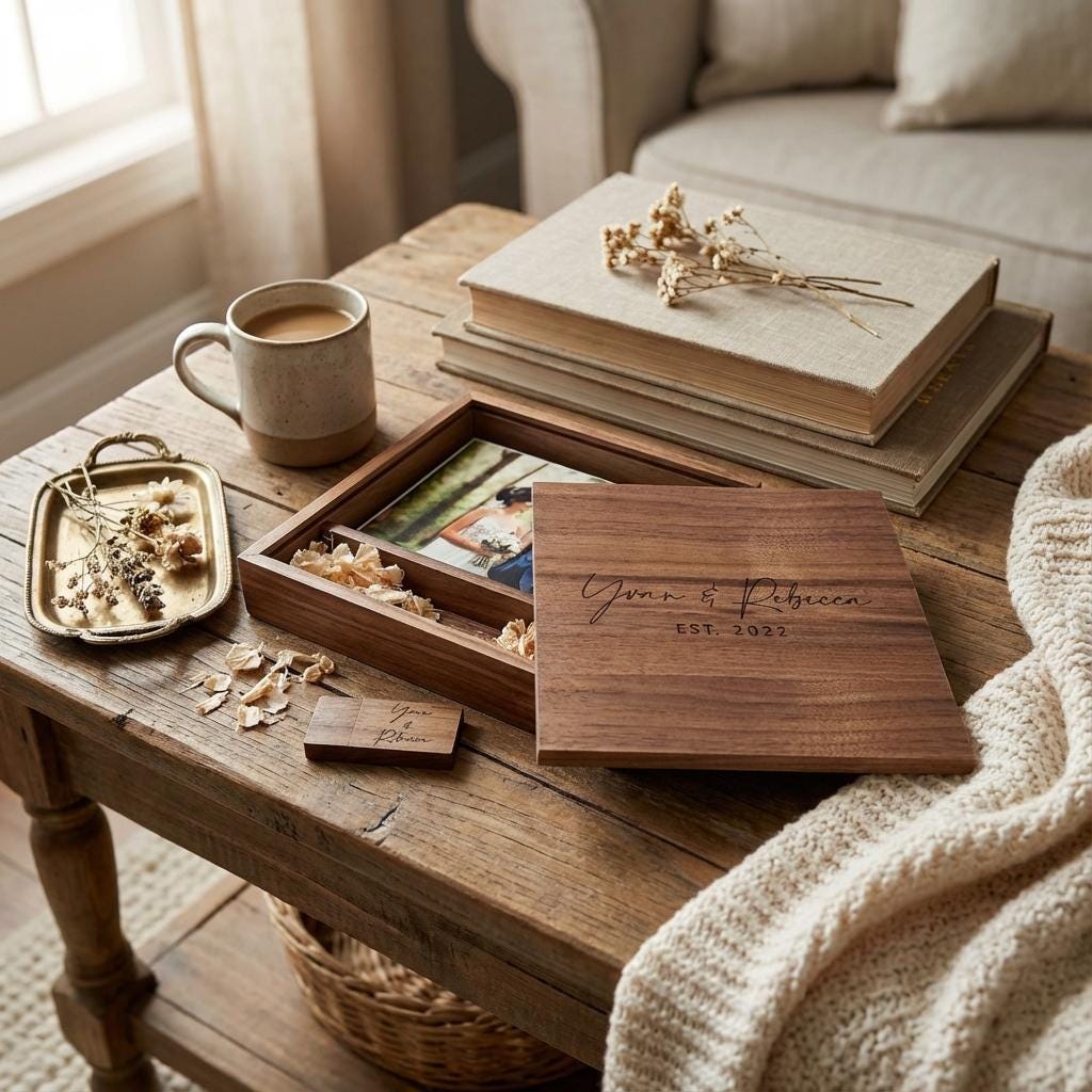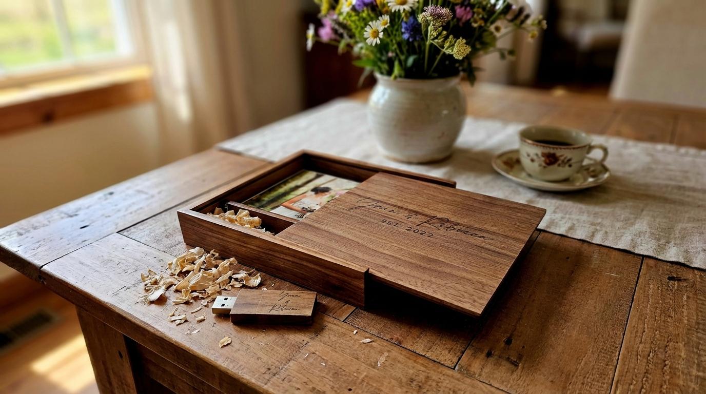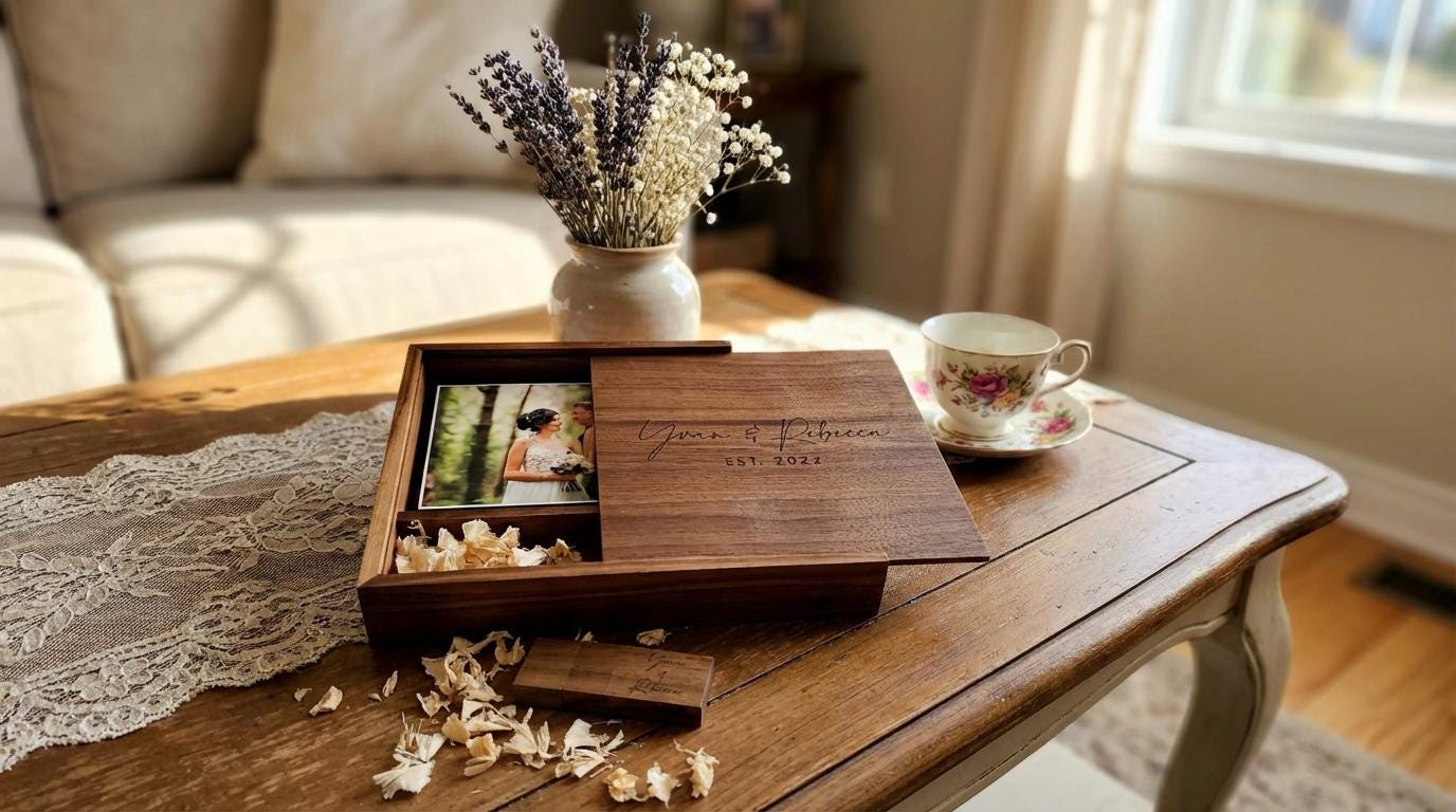 Personalized Walnut Wooden Photo Album Box Flash Drive Pendrive – Custom Engraved, Wedding Gifts Packaging, USB3.0, 64GB Capacity