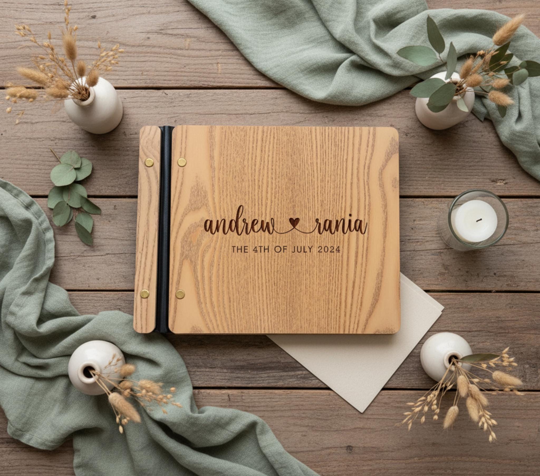 Make your wedding unforgettable with a personalized touch that will be cherished for years. Whether you're planning a rustic outdoor celebration or an elegant indoor affair, our wooden guestbooks add a touch of warmth and charm to any wedding theme.