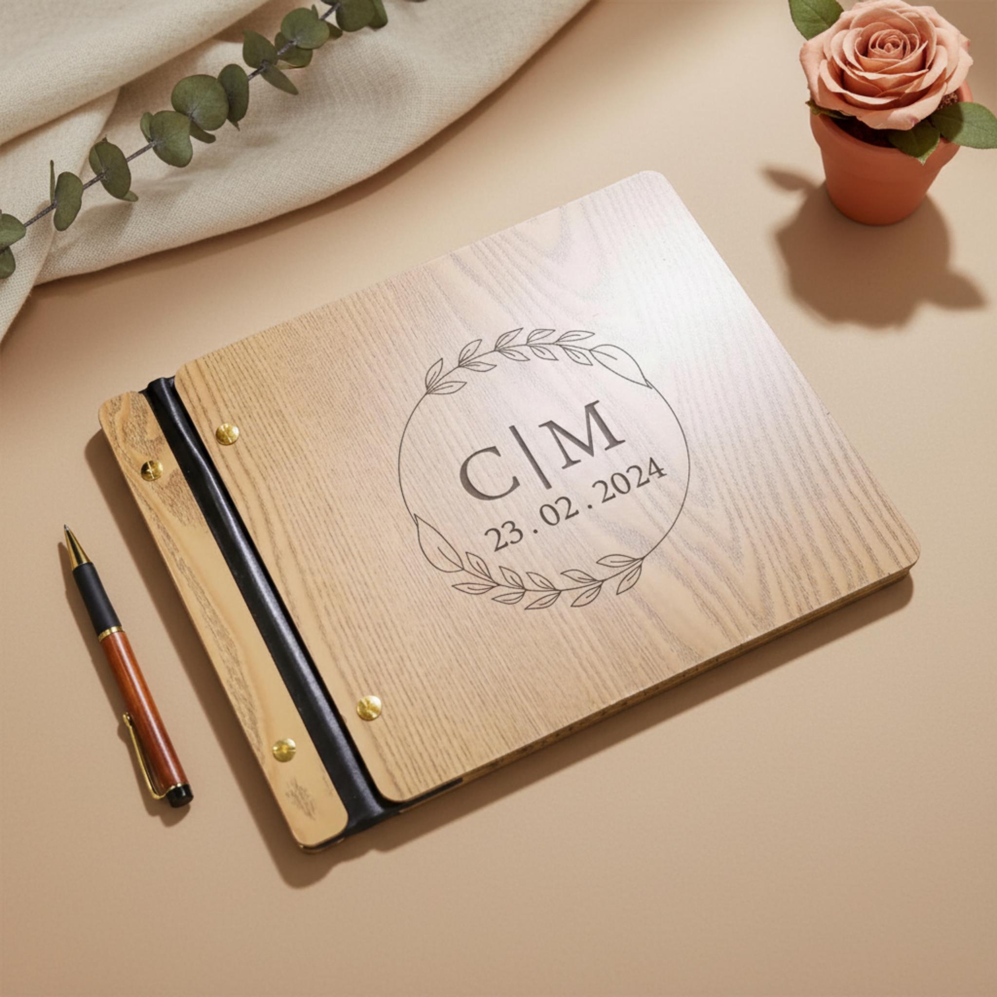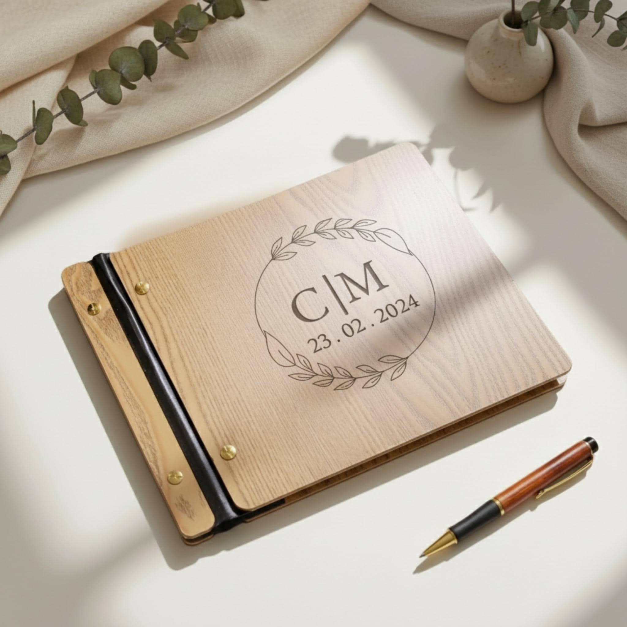 Celebrate your special day with our exquisite Personalized Wooden Wedding Guestbook. Crafted carefully, each guestbook is made from high-quality wood and features 80 pages of premium 120g paper, providing ample space for your guests' heartfelt messages and well wishes.