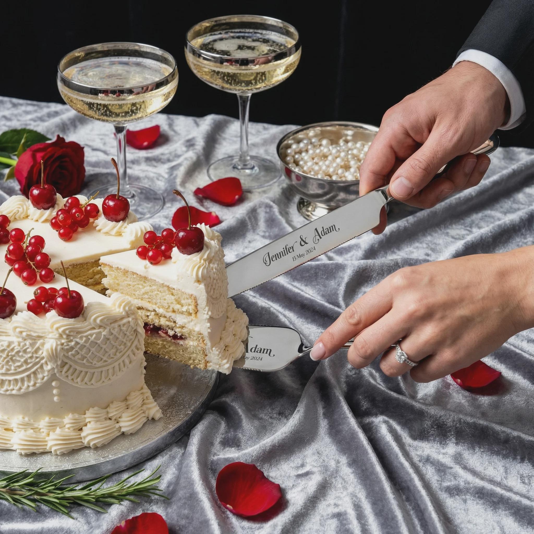 Crafted with precision and elegance, our cake knife and server set add a touch of sophistication to your special day. Whether you're celebrating in classic black, elegant silver, romantic rose gold, or timeless gold, we have the perfect set to match your vision.