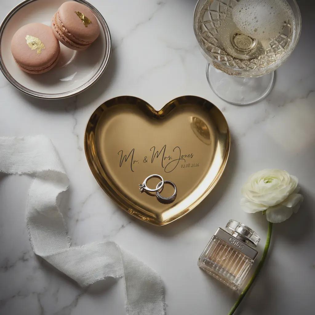 Make your big day even more memorable with our customizable heart ring dishes. Order now and add a touch of love to your celebrations!