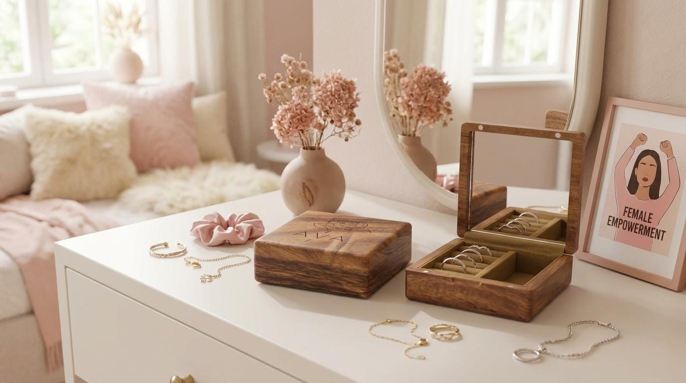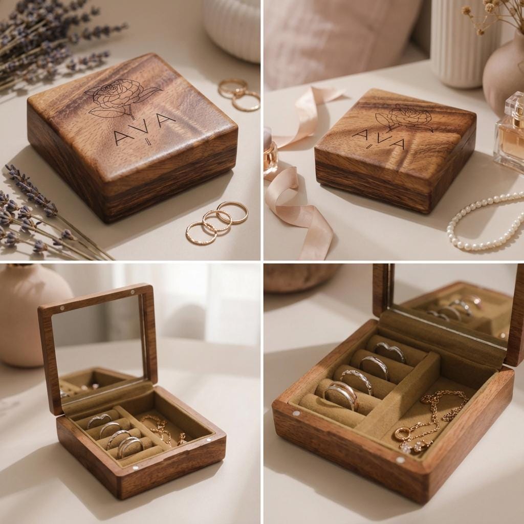 With the capacity to hold up to 4 rings and featuring a dedicated compartment for accessories, this jewelry box is as practical as it is beautiful. Whether it's her engagement ring, favorite necklace, or cherished heirloom earrings, this box will keep her treasures safe and organized.